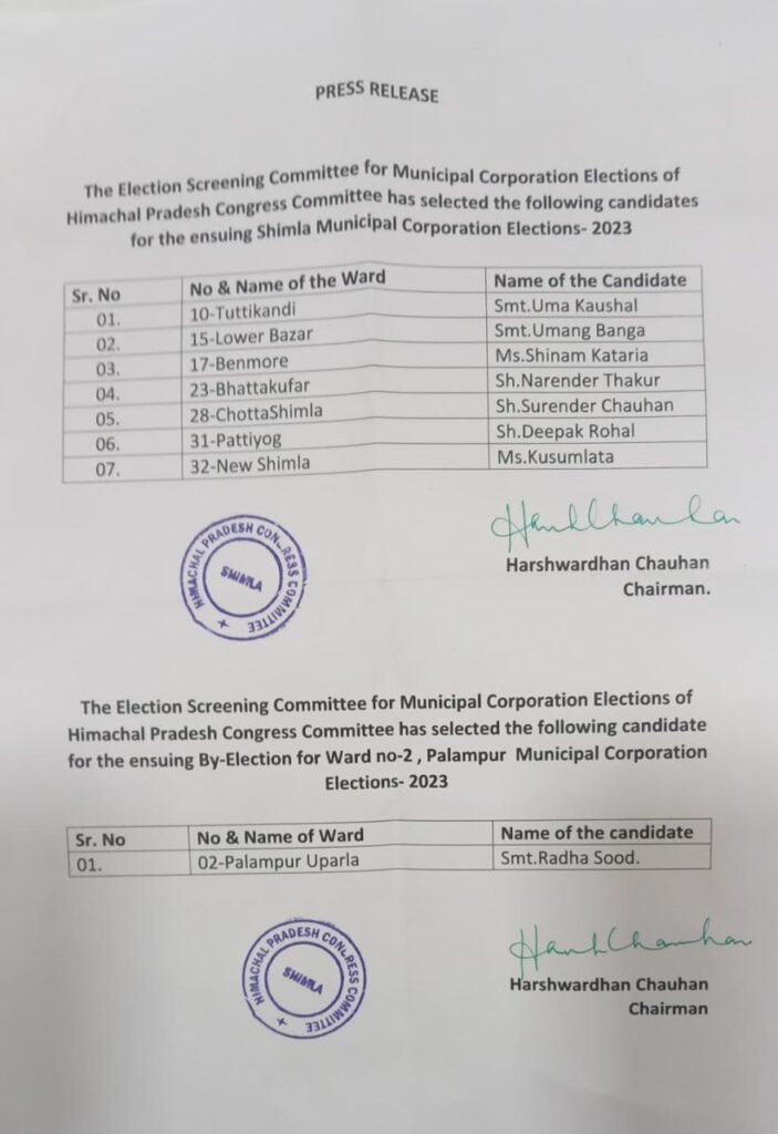 राजनीति शिमला नगर निगम चुनाव के लिए कांग्रेस ने 7 वार्ड में उम्मीदवार घोषित किए by Himachalaajkal April 11, 2023 Share FacebookTwitterPinterestWhatsApp Previous articleहिमाचल को नशामुक्त राज्य बनाने में सबका सहयोग आवश्यक: राज्यपालNext articleहमीरपुर के जसकोट में हेलीपोर्ट के लिए भूमि चिन्हित: मुख्यमंत्री Himachalaajkalhttp://himachalaajkal.in Get in Touch LEAVE A REPLY Cancel reply Comment: Please enter your comment! Name:* Please enter your name here Email:* You have entered an incorrect email address! Please enter your email address here Website: Save my name, email, and website in this browser for the next time I comment. Related Articles राजनीति जुब्बल कोटखाई के जिला परिषद के तीनों वार्ड महिला के लिए आरक्षित राजनीति हिमाचल कांग्रेस का कार्यकारिणी का गठन, नए चेहरों को मिली जगह राजनीति मेरे लिए सभी नेता एक बराबर, नए अध्यक्ष को देंगे पूरा समर्थन : सुक्खू Live Cricket ScoresShimla, Himachal Pradesh weather forecast hourly