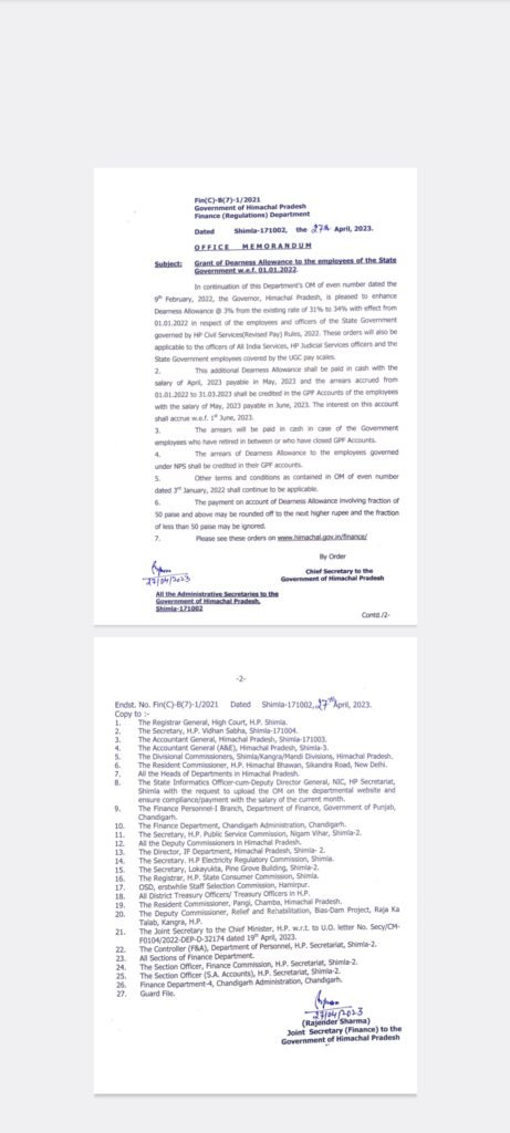 News कर्मचारियों के 3 फ़ीसदी डीए की अधिसूचना जारी by Himachalaajkal April 27, 2023 Share FacebookTwitterPinterestWhatsApp Previous articleआईजीएमसी में आग लगने की जांच हो : जयराम ठाकुरNext article5 महीने में ही हाँफ गई कांग्रेस सरकार, शिमला नगर निगम में फिर होगा भाजपा का परचम: अनुराग सिंह ठाकुर Himachalaajkalhttp://himachalaajkal.in Get in Touch LEAVE A REPLY Cancel reply Comment: Please enter your comment! Name:* Please enter your name here Email:* You have entered an incorrect email address! Please enter your email address here Website: Save my name, email, and website in this browser for the next time I comment. Related Articles News मुख्यमंत्री की ऊना जिले को 260 करोड़ की सौगात News विकास की दृष्टिकोण से पीछे न रहे चौपाल, मिलजुल कर करेंगे प्रयास : रोहित ठाकुर News राज्यपाल ने धर्मसंघ महाविद्यालय, नई दिल्ली का किया दौराआध्यात्मिक संस्थान भारत की सांस्कृतिक विरासत के संवाहक: राज्यपाल Live Cricket ScoresShimla, Himachal Pradesh weather forecast hourly