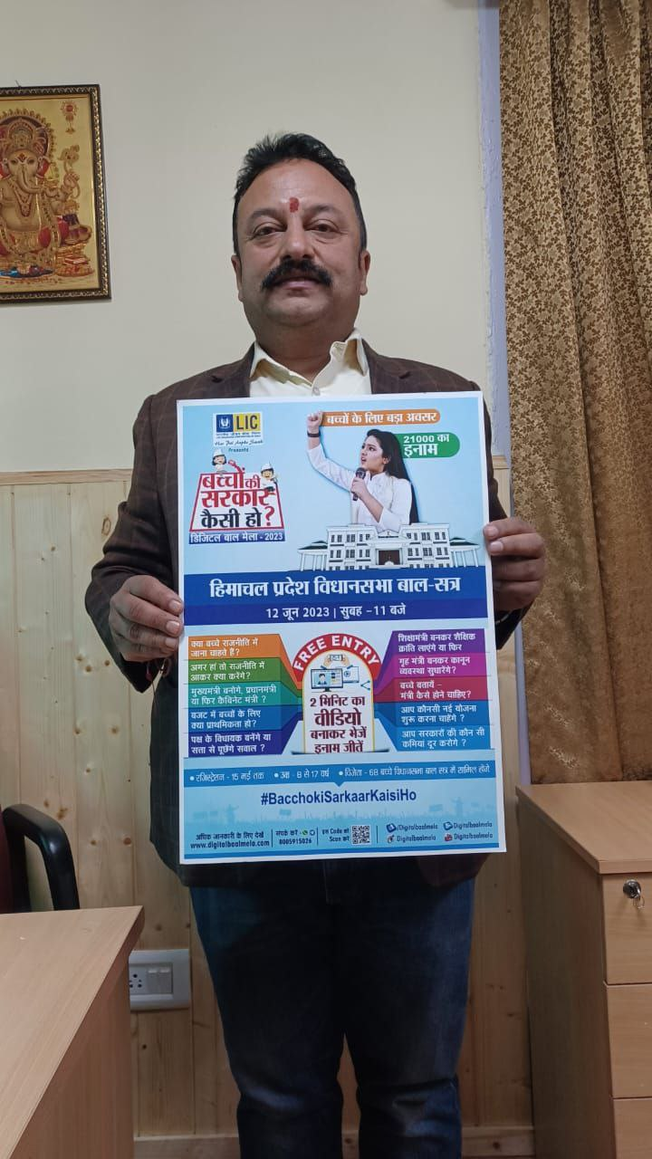 बता दें कि 12 जून को हिमाचल प्रदेश की विधानसभा में बाल सत्र का आयोजन होगा। इस सत्र के आयोजन का अवसर हिमाचल प्रदेश विधानसभा के अध्यक्ष कुलदीप सिंह पठानिया ने देश व प्रदेश के बच्चों को दिया है। इस अभियान का आगाज हिमाचल प्रदेश के मुख्यमंत्री सुखविंदर सिंह सुक्खू ने शिमला स्थित अपने निवास पर बच्चों के साथ पोस्टर जारी कर किया है । 68 बच्चे बाल विधायक के रूप में इस बाल विधानसभा सत्र में हिस्सा लेंगे और बाल हितों से जुड़े मुद्दें विधानसभा भवन में देश के समक्ष रखेंगे। डिजिटल बाल मेला की जान्हवी शर्मा ने बताया कि इस अभियान में बच्चे बढ़ चढक़र भाग ले रहे हैं, और पूरे देश से अपने सुझाव जनता के सामने रख रहे हैं।