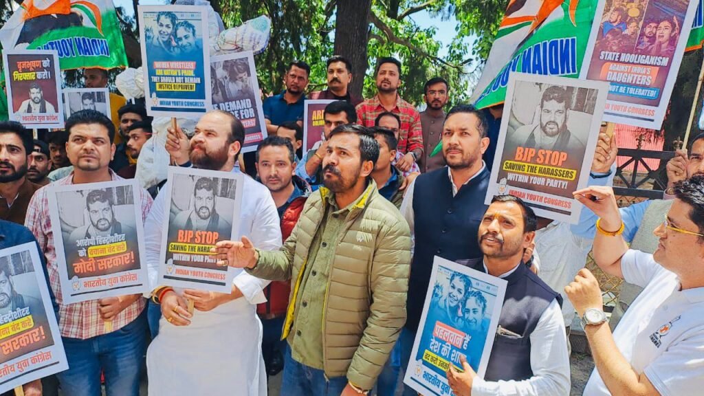 युवा कांग्रेस के अध्यक्ष ने कहा कि जब ये पहलवान पदक जीतते हैं तो प्रधानमंत्री नरेंद्र मोदी समेत भाजपा के तमाम नेता इनके साथ फोटो खिंचवाते हैं, लेकिन जब वह अपने साथ हुए शोषण पर आवाज उठा रहे हैं तो सरकार ही उन्हें रोने पर मजबूर कर रही हैं। निगम भंडारी ने कहा कि युवा कांग्रेस देश की बेटियों के साथ मजबूती से खड़ी है। सरकार इस मुद्दे पर कार्रवाई करे। उन्होंने बताया की कि बृजभूषण शरण को अभी तक गिरफ्तार नहीं किया गया है जबकि पहलवानों ने बृज भूषण शरण सिंह के उपर गंभीर आरोप लगाए गए हैं और उनका धरना गिरफ्तारी की मांग को लेकर है। इस अवसर पर भारतीय युवा कांग्रेस के सहसचिव व सह प्रभारी हिमाचल प्रदेश, योगेश हांडा, कार्यकारी अध्यक्ष यदुपति ठाकुर, राहुल चौहान, महेश ठाकुर, शिवम राणा, बृज भूषण शरण, मनदीप ठाकुर, संदीप चौहान,हेम राज ठाकुर, भीम सिंह ठाकुर, धर्मेंद्र वर्मा,अनिल चौहान व अन्य युवा कांग्रेस के पदाधिकारी उपस्थित थे।