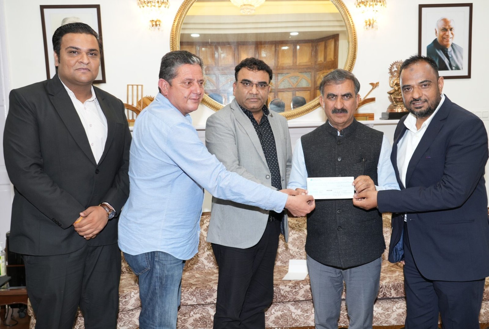 शिमला, हंस फाउंडेशन दिल्ली के मुख्य कार्यकारी अधिकारी संदीप कपूर ने फाउंडेशन की ओर से मुख्यमंत्री ठाकुर सुखविंदर सिंह सुक्खू को मुख्यमंत्री राहत कोष के लिए पांच करोड़ रुपये की राशि का चेक भेंट किया।