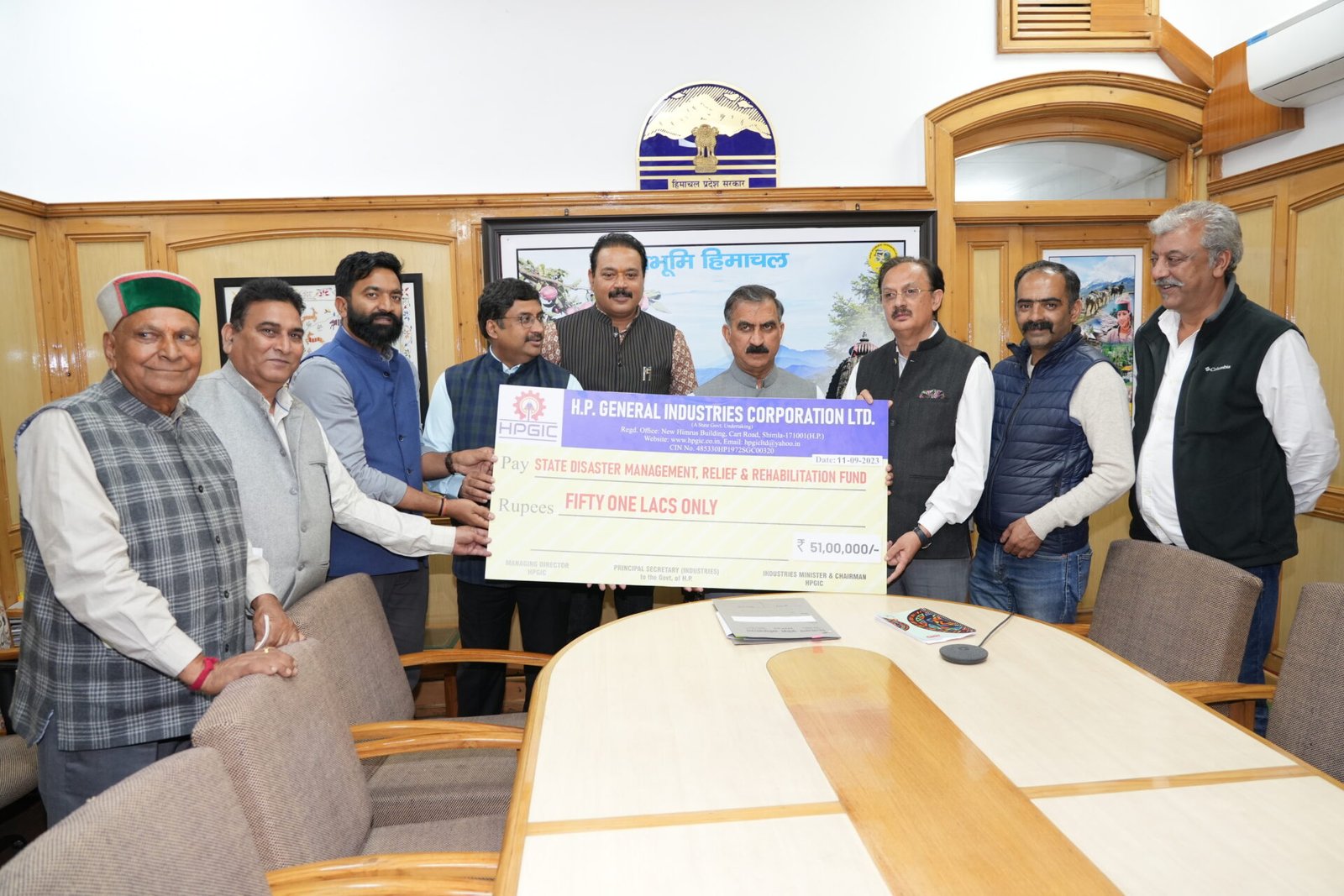 मुख्यमंत्री ने अंशदान के लिए आभार व्यक्त करते हुए कहा कि यह अंशदान आपदा प्रभावितों को राहत पहुंचाने में सहायक सिद्घ होंगे। इस अवसर पर ग्रामीण विकास एवं पंचायती राज मंत्री अनिरूद्घ सिंह, विधायक हरीश जनारथा, मुख्य सचिव प्रबोध सक्सेना, प्रधान सचिव आर$डी$नजीम, प्रबंध निदेशक सामान्य उद्योग निगम राकेश कुमार प्रजापति और अन्य लोग उपस्थित थे।