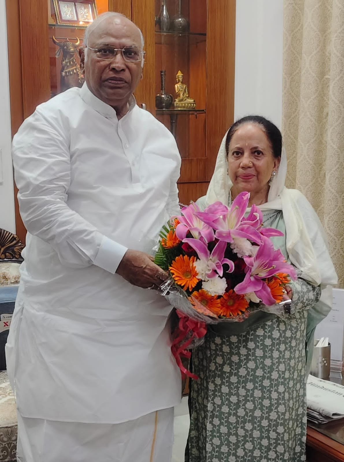 शिमला।. प्रदेश कांग्रेस अध्यक्ष एवं सांसद प्रतिभा सिंह ने आज नई दिल्ली में अखिल भारतीय कांग्रेस कमेटी के अध्यक्ष मलिकार्जुन खरगे से भेंट कर उन्हें प्रदेश में संगठनात्मक गतिविधियों की पूरी जानकारी दी । इस दौरान उन्होंने प्रदेश में भारी बारिश व भूस्खलन से हुए नुकसान की जानकारी भी दी।