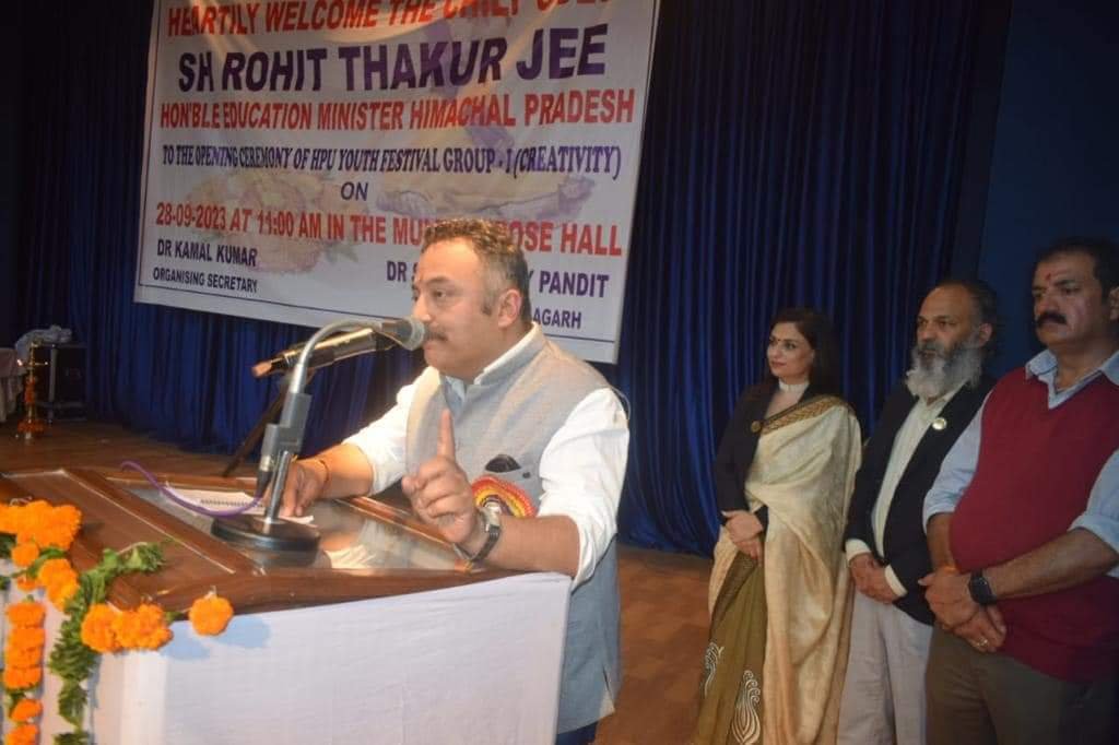 शिमला, शिक्षा मंत्री रोहित ठाकुर ने वीरवार को सोलन ज़िला के गवर्नमेंट डिग्री कॉलेज नालागढ़ में तीन दिवसीय हिमाचल प्रदेश यूनिवर्सिटी यूथ फ़ेस्टिवल ग्रुप-1 (क्रिएटिविटी) के उद्घाटन समारोह में बतौर मुख्य अथिति के रूप में शिरक्त की ।
