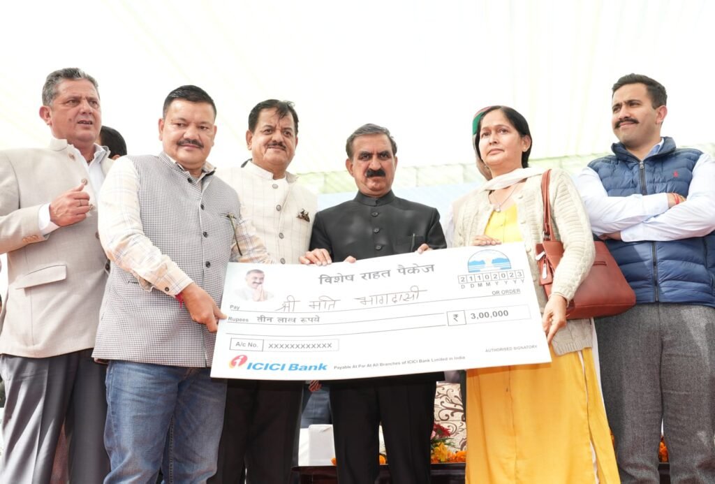 शिमला, मुख्यमंत्री ठाकुर सुखविंदर सिंह सुक्खू ने इस वर्ष बरसात के दौरान भारी बारिश, भू-स्खलन तथा बाढ़ से आई आपदा से प्रभावित परिवारों के ‘पुनर्वास’ की शुरूआत कुल्लू जिला से की और प्रभावितों को विशेष राहत पैकेज के लाभ प्रदान किए। कुल्लू के रथ मैदान से मुख्यमंत्री ने बटन दबाकर जिला कुल्लू में 324 प्रभावित परिवारों को मकान बनाने के लिए तीन-तीन लाख रुपये की पहली किस्त के रूप में 9.72 करोड़ रुपए की राहत राशि प्रत्यक्ष लाभ हस्तांतरण के माध्यम से जारी की। यह मुआवजा राशि जिला में आपदा के दौरान पूरी तरह से क्षतिग्रस्त घरों के मालिकों को उनके पुनर्वास के लिए प्रदान की गई।