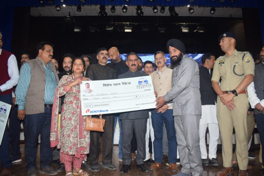 ािमला। मुख्यमंत्री ठाकुर सुखविंदर सिंह सुक्खू ने बुधवार को पुनर्वास योजना के तहत भारी बारिश एवं भूस्खलन से आई आपदा से प्रभावित जिला बिलासपुर के 1162 परिवारों को 8.97 करोड़ रुपये की मुआवजा राशि वितरित की। उन्होंने जिला बिलासपुर में आपदा के दौरान जिन 94 प्रभावित परिवारों के घर पूरी तरह से क्षतिग्रस्त हुए हैं, उन्हें पहली किश्त के रूप में 3-3 लाख रुपये प्रदान किए। मुख्यमंत्री ने बिलासपुर सदर विकास खंड के अंतर्गत 404 परिवारों को 3.93 करोड़, घुमारवीं विकास खंड के अंतर्गत 532 आपदा प्रभावित परिवारों को 4.55 करोड़ रुपये, झंडूता विकास खंड के तहत 198 आपदा प्रभावित परिवारों को 1.21 करोड़ रुपये तथा स्वारघाट विकास खंड के अंतर्गत 28 आपदा प्रभावित परिवारों को 19.10 लाख रुपये जारी किए।