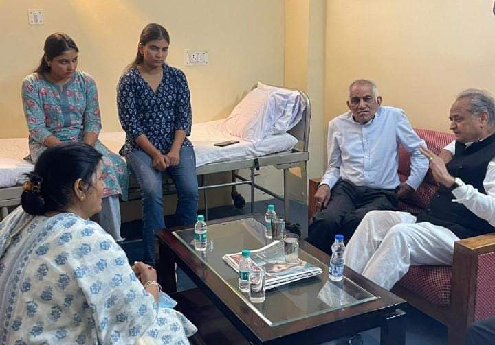 राजस्थान के मुख्यमंत्री अशोक गहलोत सोमवार शाम एम्स पहुंचे। उन्होंने मुख्यमंत्री ठाकुर सुखविंदर सिंह सुक्खू की पत्नी कमलेश ठाकुर से मुलाकात की और मुख्यमंत्री के स्वास्थ्य के बारे में जाना। अशोक. गहलोत ने सुक्खू के जल्द स्वस्थ होने की कामना की है।