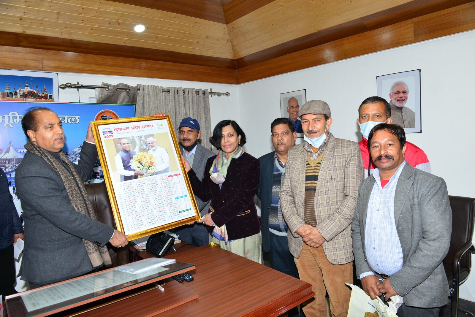 शिमला। मुख्यमंत्री जयराम ठाकुर ने सरकारी कैलेंडर-2022 जारी किया। इस कैलेंडर का प्रकाशन हिमाचल प्रदेश मुद्रण तथा लेखन सामग्री विभाग द्वारा किया गया है। मुद्रण तथा लेखन सामग्री विभाग की नियंत्रक प्रभा राजीव, सहायक नियंत्रक ऊमा शंकर, ईश्वर दास, कुलदीप चन्द और अन्य वरिष्ठ अधिकारी भी इस अवसर पर उपस्थित थे।