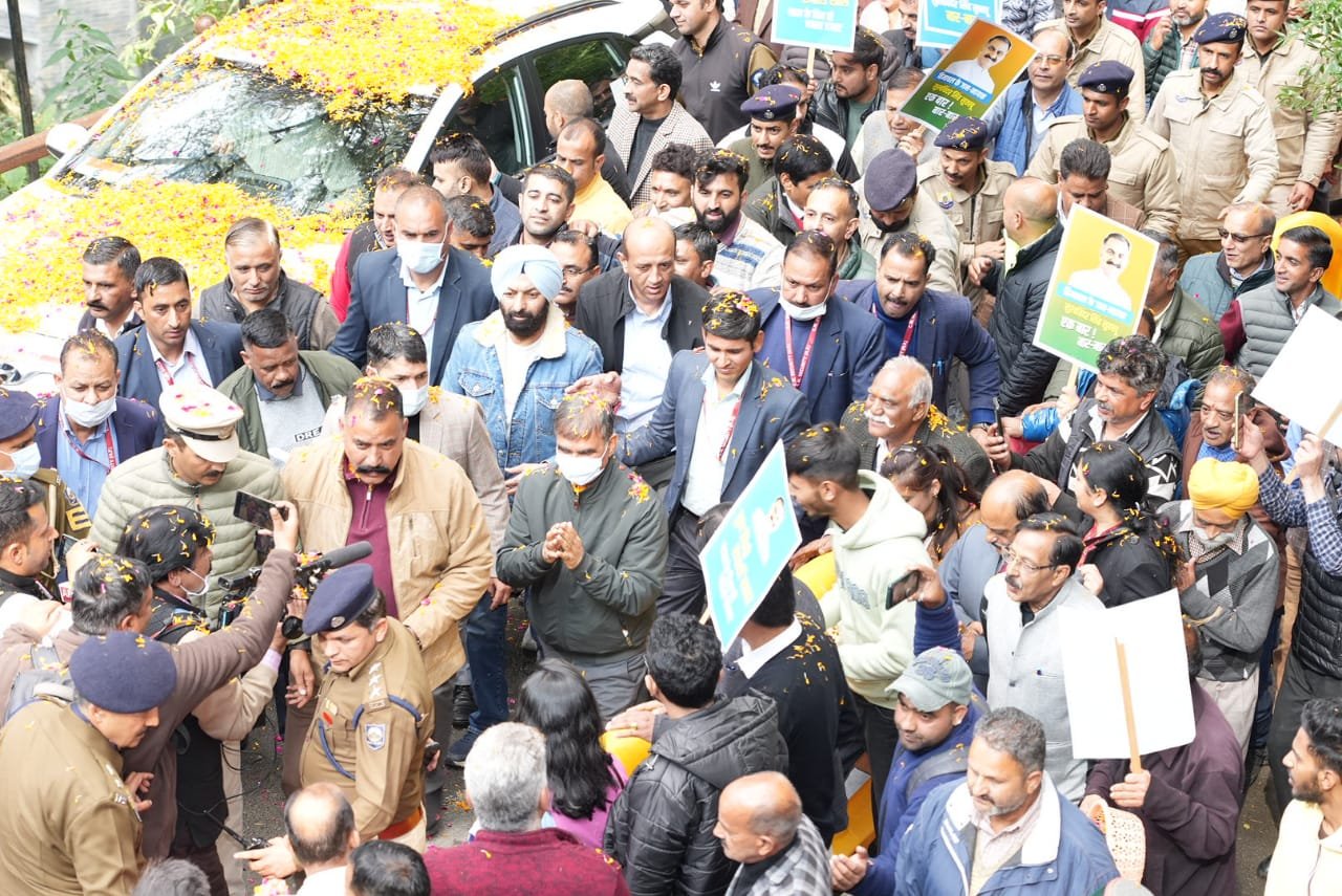 मुख्यमंत्री का शिमला लौटने पर कार्यकर्ताओं ने किया भव्य स्वागत