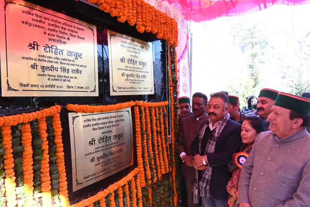 शिमला। शिक्षा मंत्री रोहित ठाकुर ने मंगलवार को ठियोग विधानसभा क्षेत्र के धर्मपुर में 1.66 करोड़ रुपए से निर्मित होने वाले रावमापा धर्मपुर मधाना और 45-45 लाख रुपए से निर्मित होने वाले प्राथमिक पाठशाला धर्मपुर मधाना और भोगड़ा के नए भवनों की आधारशिला रखी।