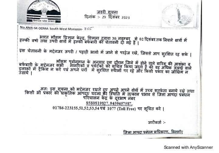 News मौसम विज्ञान केंद्र शिमला दने 30 नवंबर से 2 दिसंबर तक प्रदेश के निचले क्षेत्रों में हल्की बारिश व ऊंचाई वाले क्षेत्रों में बर्फ़बारी की संभावना जताई है। by Himachalaajkal November 29, 2023 Share FacebookTwitterPinterestWhatsApp Previous articleलोगों को कैंसर के प्रति जागरूक होने की जरूरत: राज्यपालNext articleमौसम ने ली करवट, सेब के पौधों में समय पूरे होंगे चिलिंग आवर Himachalaajkalhttp://himachalaajkal.in Get in Touch LEAVE A REPLY Cancel reply Comment: Please enter your comment! Name:* Please enter your name here Email:* You have entered an incorrect email address! Please enter your email address here Website: Save my name, email, and website in this browser for the next time I comment. Related Articles News मुख्यमंत्री से नादौन विधानसभा क्षेत्र के बड़ा और फस्टे ग्राम पंचायत के प्रतिनिधिमंडल ने की मुलाक़ात News समावेशी शासन की दिशा में सशक्त कदमः सामाजिक सुरक्षा से सुदृढ़ हो रहा वंचित वर्ग News शिक्षा मंत्री ने निजी बस हादसे में 14 लोगों की मृत्यु पर शोक व्यक्त किया Live Cricket ScoresShimla, Himachal Pradesh weather forecast hourly
