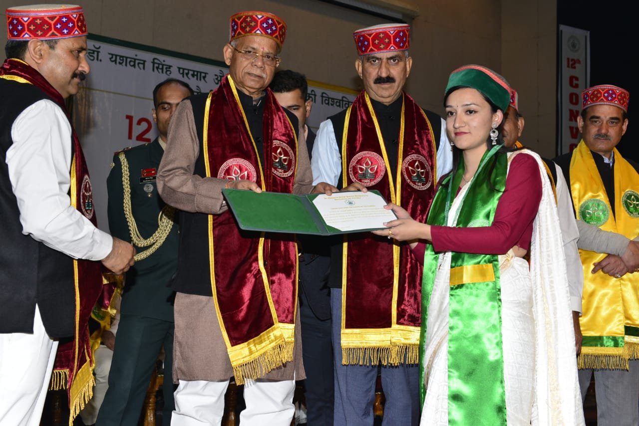राज्यपाल ने 773 विद्यार्थियों को प्रमाण-पत्र प्रदान किये। इसके अलावा 1305 विद्यार्थियों को बी.एस.सी. औद्यानिकी और बी.एससी. वानिकी, बी.टेक बायो-टेक्नोलॉजी, एम.बी.ए./ए.बी.एम.,एम.एससी. और पीएच.डी. औद्यानिकी एवं वानिकी में डिग्रियां प्रदान कीं।