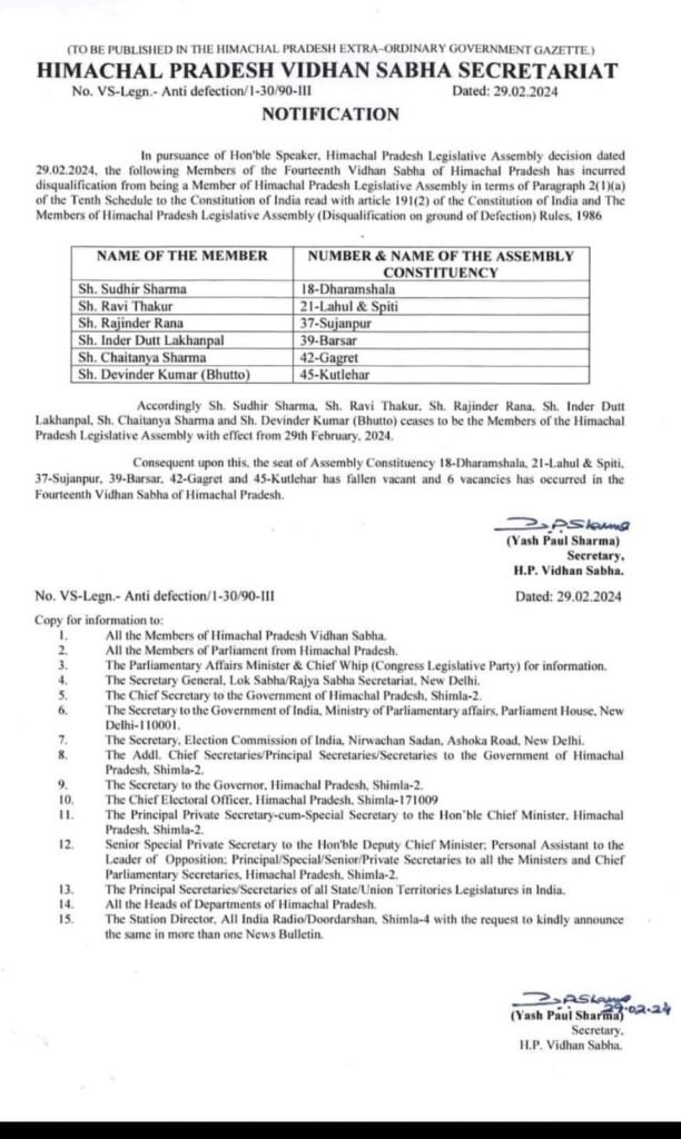 News बागी विधायको को लेकर विधानसभा सचिवालय ने की नोटिफिकेशन जारी। by Himachalaajkal February 29, 2024 Share FacebookTwitterPinterestWhatsApp Previous articleहिमाचल प्रदेश मंत्रिमण्डल के निर्णयNext articleप्रदेश मंत्रिमंडल की बैठक आज शाम 4 बजे होगी । Himachalaajkalhttp://himachalaajkal.in Get in Touch LEAVE A REPLY Cancel reply Comment: Please enter your comment! Name:* Please enter your name here Email:* You have entered an incorrect email address! Please enter your email address here Website: Save my name, email, and website in this browser for the next time I comment. Related Articles News शिमला। मुख्यमंत्री सुखविंद्र सिंह सुक्खू ने आज आईजीएमसी में विधायक और 7वें राज्य वित्त आयोग के चेयरमैन नंद लाल का हालचाल जाना। मुख्यमंत्री ने... News मुख्यमंत्री को होली उत्सव के लिए आमंत्रित किया News ग्रामीण बैंक ने मुख्यमंत्री आपदा राहत कोष में दिया योगदान Live Cricket ScoresShimla, Himachal Pradesh weather forecast hourly