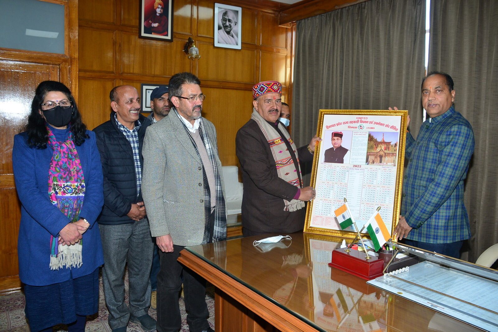 शिमला। मुख्यमंत्री जयराम ठाकुर ने शुक्रवार को हिमाचल प्रदेश राज्य सहकारी विपणन एवं उपभोक्ता फेडरेशन लिमिटेड (हिमफेड) का कैलेंडर जारी किया। हिमफेड के अध्यक्ष गणेश दत्त ने कैलेंडर जारी करने पर मुख्यमंत्री का आभार व्यक्त किया और उन्हें नववर्ष की शुभकामनाएं दी। उन्होंने मुख्यमंत्री को प्रदेश सरकार के चार वर्ष के सफल कार्यकाल के लिए बधाई भी दी।