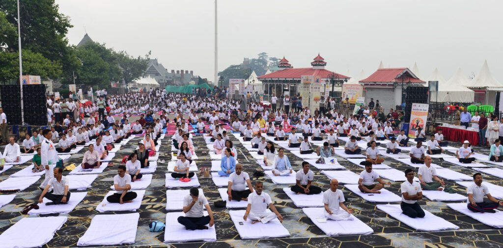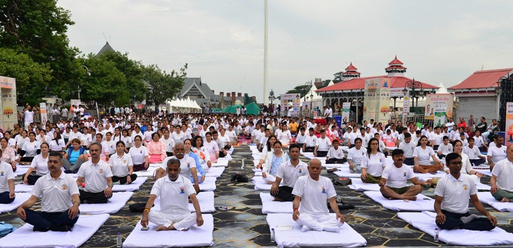 शिमला। राज्यपाल शिव प्रताप शुक्ल ने अंतरराष्ट्रीय योग दिवस के अवसर पर आज रिज पर आयोजित राज्यस्तरीय कार्यक्रम में योग क्रियाएं की। आयुर्वेद विभाग द्वारा आयोजित इस कार्यक्रम में अन्य व्यक्तियों ने भी योग में भाग लिया।