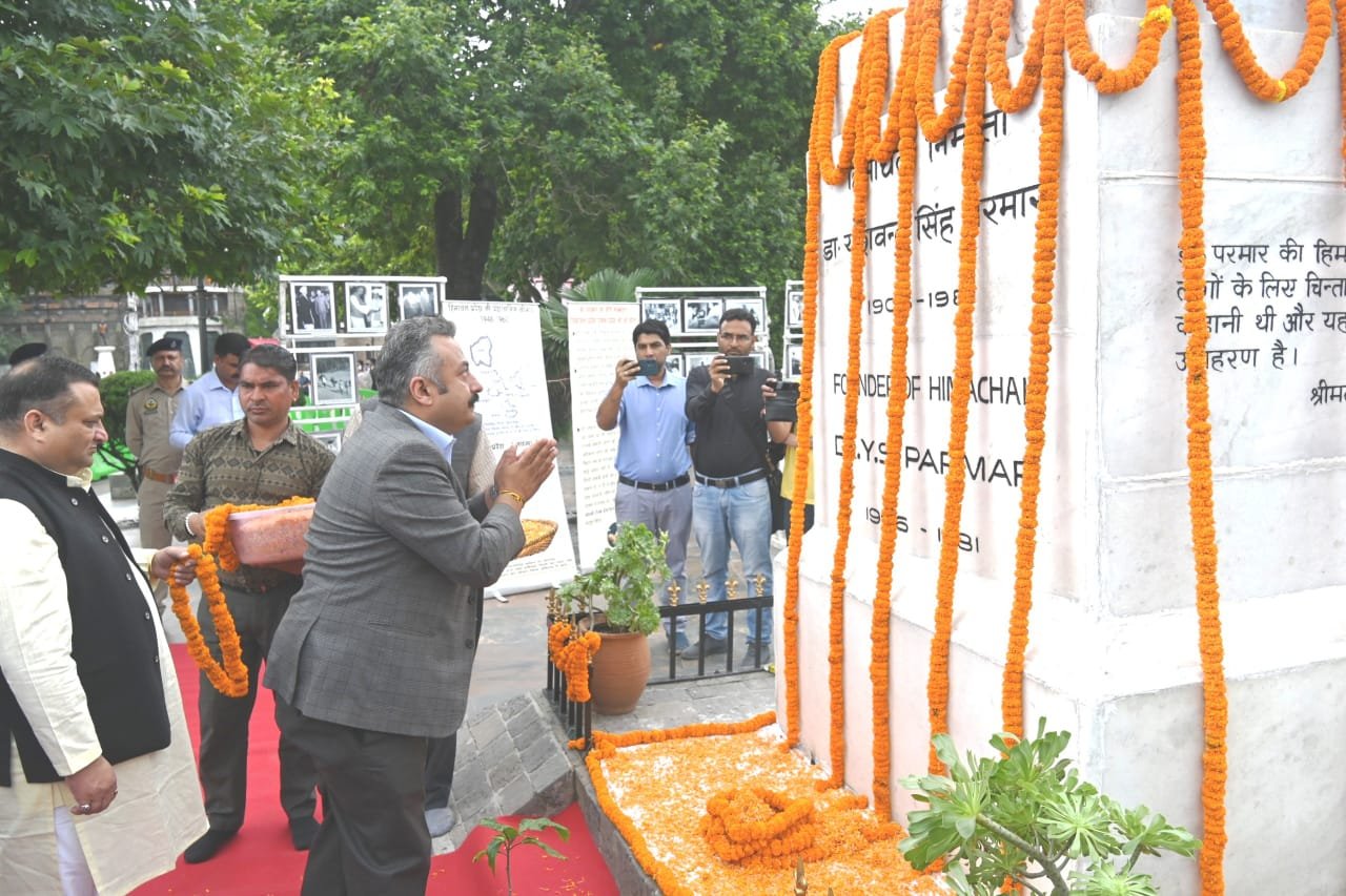 शिमला। भारत के राजनेता, स्वतंत्रता संग्राम सेनानी, समाजसेवक, हिमाचल निर्माता एवं प्रदेश के पहले मुख्यमंत्री डा. यशवंत सिंह परमार जी की 118वी जयंती पर आज शिमला में मुख्य मंत्री सुखविंदर सिंह सुक्खू व शिक्षा मंत्री रोहित ठाकुर ने उन्हें याद कर पुष्प श्रद्धांजलि अर्पित की