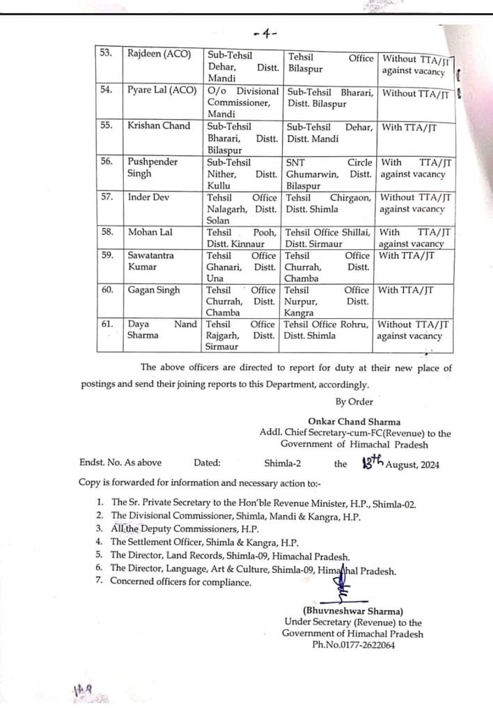 News नायब तहसीलदार के तबादला आदेश जारी by Himachalaajkal August 13, 2024 Share FacebookTwitterPinterestWhatsApp Previous articleदेश व प्रदेश की फल मंडियों में पहुंची सेब की 16 लाख पेटियांNext articleदेशी गायों और भैंसों की खरीद के लिए वित्तीय सहायता बढ़ाने पर विचार: मुख्यमंत्री Himachalaajkalhttp://himachalaajkal.in Get in Touch LEAVE A REPLY Cancel reply Comment: Please enter your comment! Name:* Please enter your name here Email:* You have entered an incorrect email address! Please enter your email address here Website: Save my name, email, and website in this browser for the next time I comment. Related Articles News मुख्यमंत्री को होली उत्सव के लिए आमंत्रित किया News ग्रामीण बैंक ने मुख्यमंत्री आपदा राहत कोष में दिया योगदान News मुख्यमंत्री ने किसी भी पात्र व्यक्ति की सामाजिक सुरक्षा पेंशन बंद नहीं करने के निर्देश दिए Live Cricket ScoresShimla, Himachal Pradesh weather forecast hourly