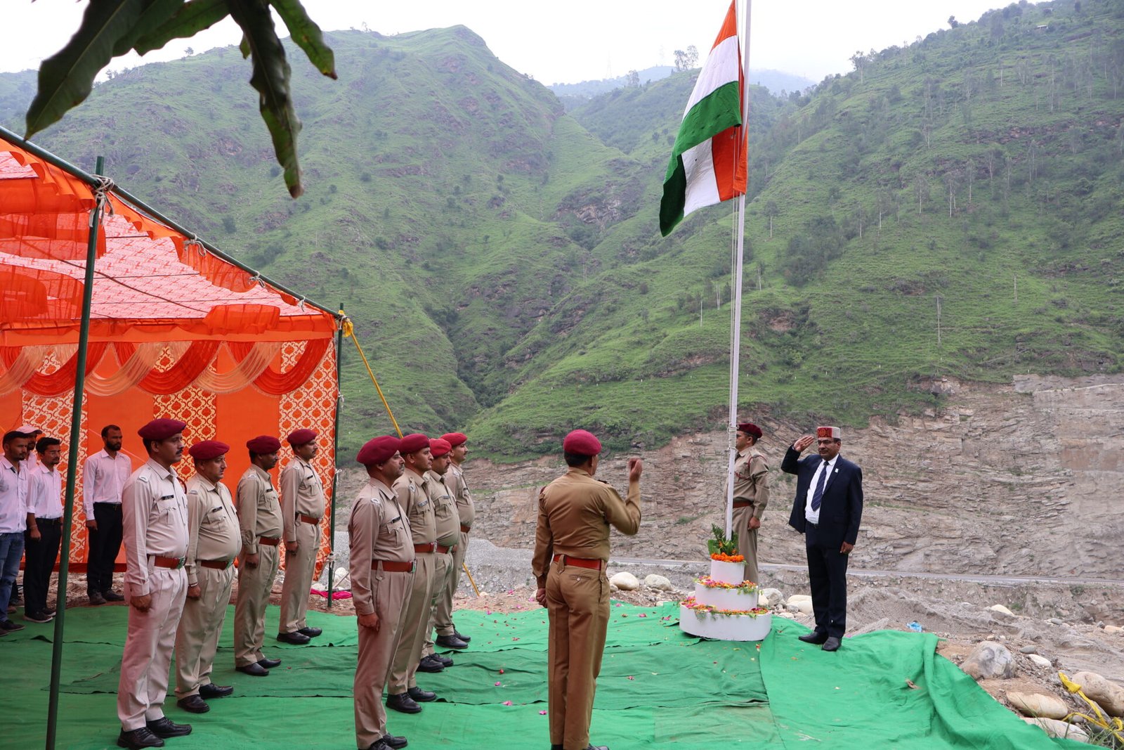 शिमला। एसजेवीएन की लूहरी जलविद्युत परियोजना चरण-1 में स्वतन्त्रता दिवस परियोजना बांध स्थल पलेही में हर्षोल्लास से मनाया गया। समारोह के मुख्य अतिथि महाप्रबन्धक व परियोजना प्रमुख, सुनील चौधरी ने परियोजना में तैनात हिम्पैस्को सुरक्षा गार्डों की सलामी ली और राष्ट्रीय ध्वज फहराया। इस समारोह में मैरार्ज पटेल इजीनियरिंग के अधिकारीगण, परियोजना के अधिकारी व कर्मचारी, हिन्पैस्को एवं अनुबन्ध कर्मचारी उपस्थित थे।