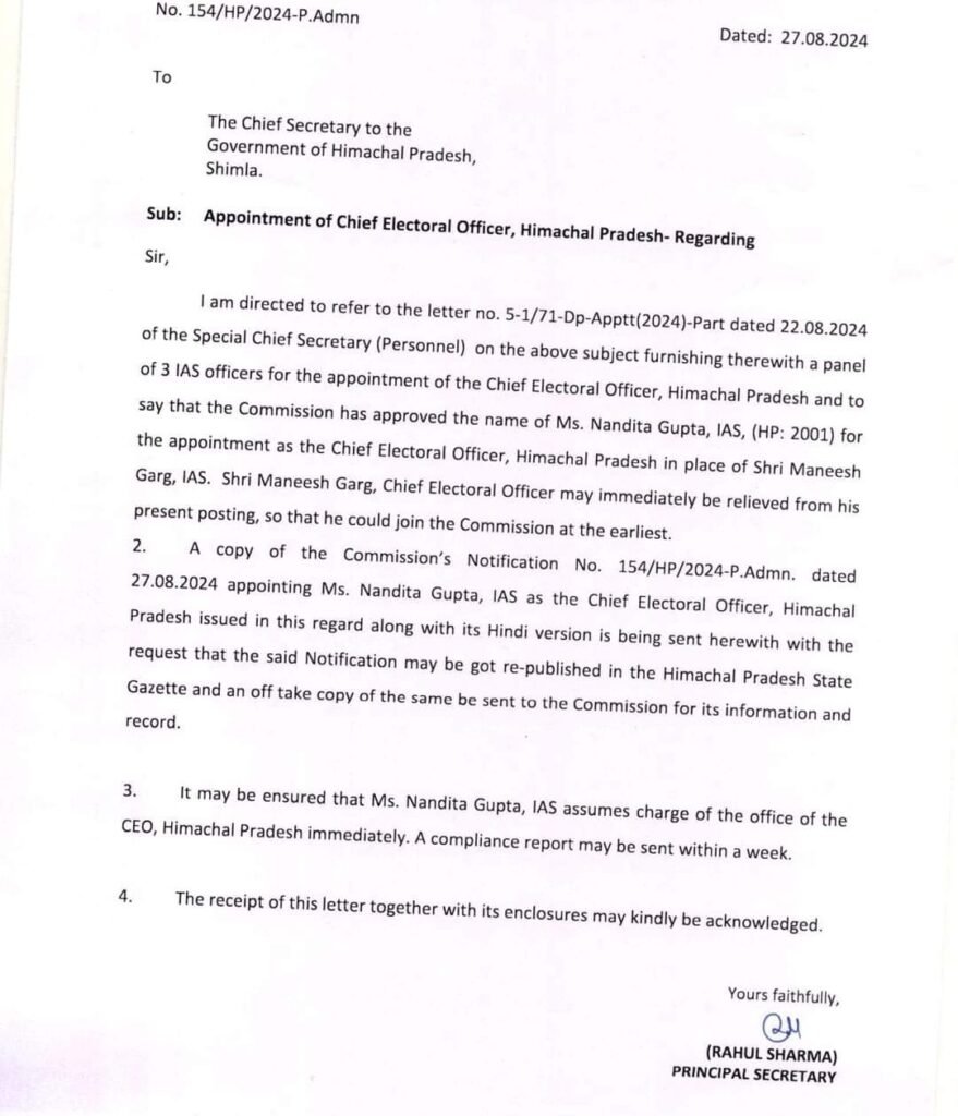News आईएएस अधिकारी नंदिता गुप्ता होंगी हिमाचल की मुख्य निर्वाचन अधिकारी, अधिसूचना जारी। by Himachalaajkal August 27, 2024 Share FacebookTwitterPinterestWhatsApp Previous articleचंबा के शिक्षक सुनील कुमार का राष्ट्रीय पुरस्कार- 2024 के लिए चयन, सीएम व शिक्षा मंत्री ने दी बधाईNext articleप्रदेश में पर्यटन की परियोजनाओं को समय पर पूरा किया जाए : मुख्यमंत्री Himachalaajkalhttp://himachalaajkal.in Get in Touch LEAVE A REPLY Cancel reply Comment: Please enter your comment! Name:* Please enter your name here Email:* You have entered an incorrect email address! Please enter your email address here Website: Save my name, email, and website in this browser for the next time I comment. Related Articles News मुख्यमंत्री को होली उत्सव के लिए आमंत्रित किया News ग्रामीण बैंक ने मुख्यमंत्री आपदा राहत कोष में दिया योगदान News मुख्यमंत्री ने किसी भी पात्र व्यक्ति की सामाजिक सुरक्षा पेंशन बंद नहीं करने के निर्देश दिए Live Cricket ScoresShimla, Himachal Pradesh weather forecast hourly