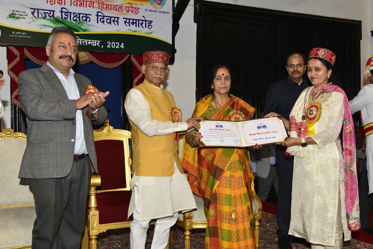 शिमला। शिक्षक दिवस के अवसर पर राज्यपाल शिव प्रताप शुक्ल ने आज राजभवन में आयोजित राज्य स्तरीय समारोह में 27 अध्यापकों को राज्य पुरस्कार और एक अध्यापक को राष्ट्रीय पुरस्कार से सम्मानित किया। यह पुरस्कार वर्ष 2023 के लिए शिक्षा के क्षेत्र में उल्लेखनीय योगदान के लिए प्रदान किए गए। इस अवसर पर लेडी गवर्नर जानकी शुक्ला ने सभी पुरस्कृत अध्यापकों को पौधें भी भेंट किए।