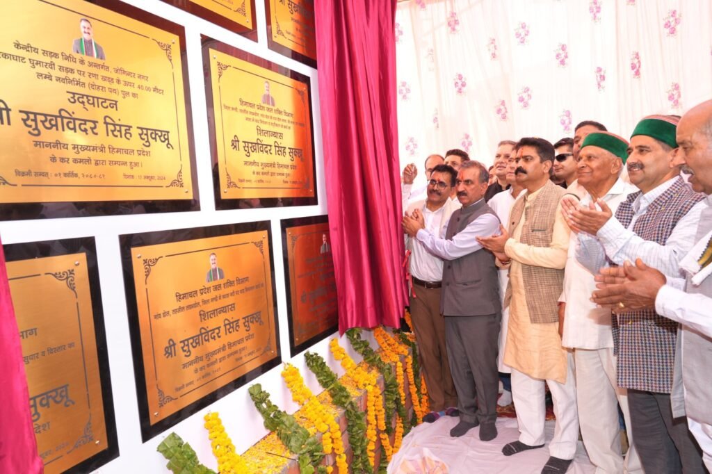 शिमला। मुख्यमंत्री ठाकुर सुखविंद्र सिंह सुक्खू ने आज जिला मंडी के जोगिन्द्रनगर विधानसभा क्षेत्र में 76.31 करोड़ रुपये लागत की आठ परियोजनाओं के उद्घाटन एवं शिलान्यास किए। मुख्यमंत्री ने 23.90 करोड़ रुपये की लागत से मिनी सचिवालय जोगिन्द्रनगर में नवनिर्मित भवन बी और डी ब्लॉक का लोकार्पण किया। उन्होंने 10.50 करोड़ रुपये की लागत से राजकीय महाविद्यालय जोगिन्द्रनगर में नवनिर्मित सभागार, 8 करोड़ रुपये की लागत से जोगिन्द्रनगर-सरकाघाट-घुमारवीं सड़क पर रणा खड्ड पर बने पुल और ग्राम पंचायत पसल व सगनेहड़ में 3.70 करोड़ रुपये की लागत से निर्मित पेयजल योजना का उद्घाटन किया।