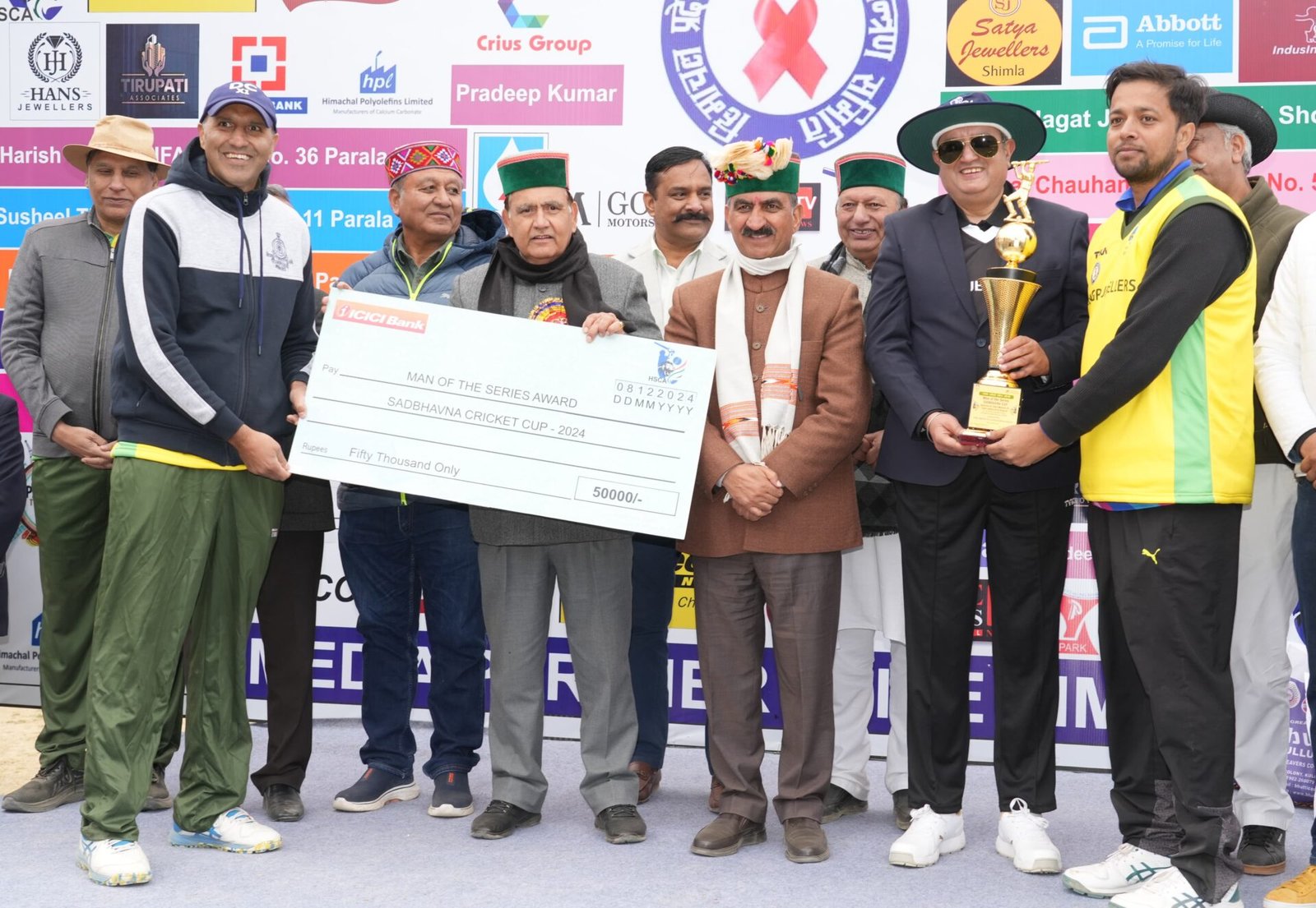 इस अवसर पर मुख्यमंत्री ठाकुर सुखविंद्र सिंह सुक्खू ने आज के मैन ऑफ द मैच विवेक भाटिया और पिछले कल गवर्नर व प्रेस के बीच खेले गए मैच के मैन आूफ द मैच आबिद हुसैन सादिक व चीफ जस्टिस-इलेवन और सीएम-इलेवन के बीच खेले गए मैन ऑफ द मैच विकास भारद्घाज को सम्मानित किया।