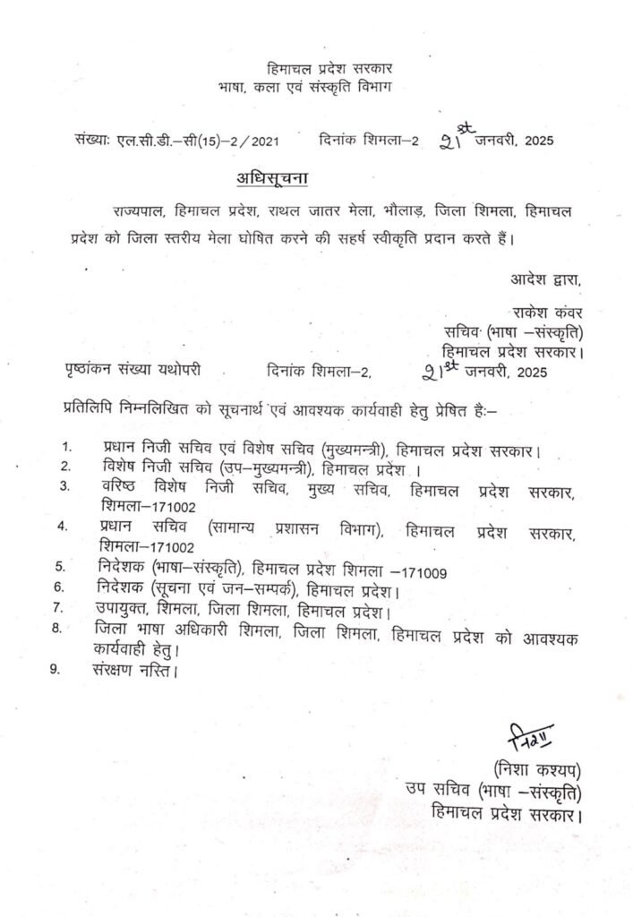 News जुब्बल के राथल जातर मेल भोलाड को जिला स्तरीय मेल घोषित करने की अधिसूचना जारी by Himachalaajkal January 21, 2025 Share FacebookTwitterPinterestWhatsApp Previous articleमुख्यमंत्री ने किया विंटर कार्निवल की सांस्कृतिक संध्याओं का शुभारंभ, कहा प्रदेश की समृद्ध संस्कृति को संजोए रखने में शरदोत्सव की उल्लेखनीय भूमिकाNext articleमुख्यमंत्री ने कांगड़ा में विकासात्मक परियोजनाओं की समीक्षा की Himachalaajkalhttp://himachalaajkal.in Get in Touch LEAVE A REPLY Cancel reply Comment: Please enter your comment! Name:* Please enter your name here Email:* You have entered an incorrect email address! Please enter your email address here Website: Save my name, email, and website in this browser for the next time I comment. Related Articles News शिक्षा मंत्री 2 मार्च को कोटखाई क्षेत्र के दौरे पर News टाहू-कथांडी के लोगों ने की शिक्षा मंत्री से मुलाकात News शिमला। मुख्यमंत्री सुखविंद्र सिंह सुक्खू ने आज आईजीएमसी में विधायक और 7वें राज्य वित्त आयोग के चेयरमैन नंद लाल का हालचाल जाना। मुख्यमंत्री ने... Live Cricket ScoresShimla, Himachal Pradesh weather forecast hourly
