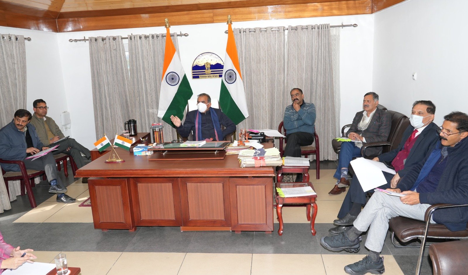 बैठक में ग्रामीण विकास एवं पंचायती राज मंत्री अनिरुद्ध सिंह, तकनीकी शिक्षा मंत्री राजेश धर्माणी, मुख्य सचिव प्रबोध सक्सेना, प्रधान सचिव देवेश कुमार, मुख्यमंत्री के सचिव राकेश कंवर, सचिव संदीप कदम और राखिल काहलों, निदेशक डिजिटल टेक्नोलॉजीज एंड गवर्नेंस डॉ. निपुण जिंदल, प्रबंध निदेशक हिमाचल प्रदेश कौशल विकास निगम गंधर्व राठौर और वरिष्ठ अधिकारी उपस्थित थे।