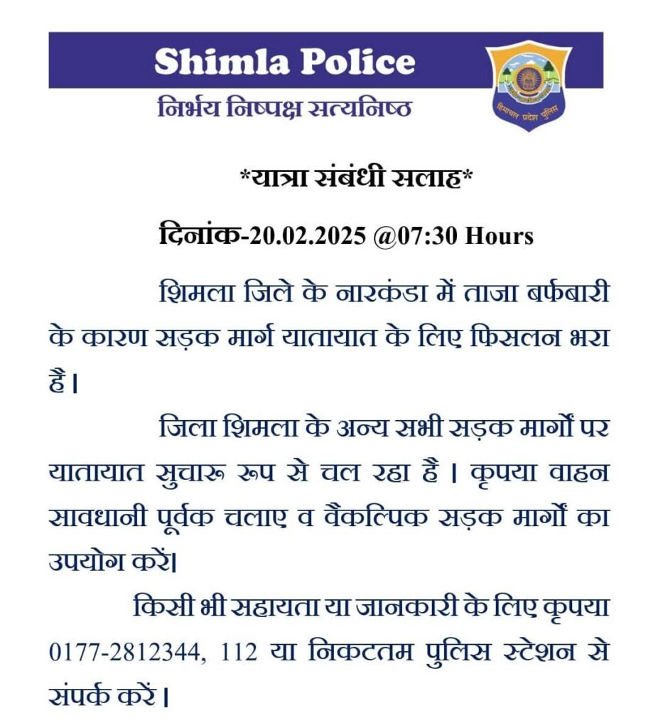 News ऊपरी शिमला में ताजा बर्फबारी का नजारा , पुलिस ने की एडवाइजरी जारी by Himachalaajkal February 20, 2025 Share FacebookTwitterPinterestWhatsApp Previous articleप्रदेश सरकार स्वास्थ्य क्षेत्र को कर रही मजबूत : सुक्खूNext articleहिमाचल कांग्रेस की कार्यकारणी का गठन जल्द होगा Himachalaajkalhttp://himachalaajkal.in Get in Touch LEAVE A REPLY Cancel reply Comment: Please enter your comment! Name:* Please enter your name here Email:* You have entered an incorrect email address! Please enter your email address here Website: Save my name, email, and website in this browser for the next time I comment. Related Articles News शिमला। मुख्यमंत्री सुखविंद्र सिंह सुक्खू ने आज आईजीएमसी में विधायक और 7वें राज्य वित्त आयोग के चेयरमैन नंद लाल का हालचाल जाना। मुख्यमंत्री ने... News मुख्यमंत्री को होली उत्सव के लिए आमंत्रित किया News ग्रामीण बैंक ने मुख्यमंत्री आपदा राहत कोष में दिया योगदान Live Cricket ScoresShimla, Himachal Pradesh weather forecast hourly
