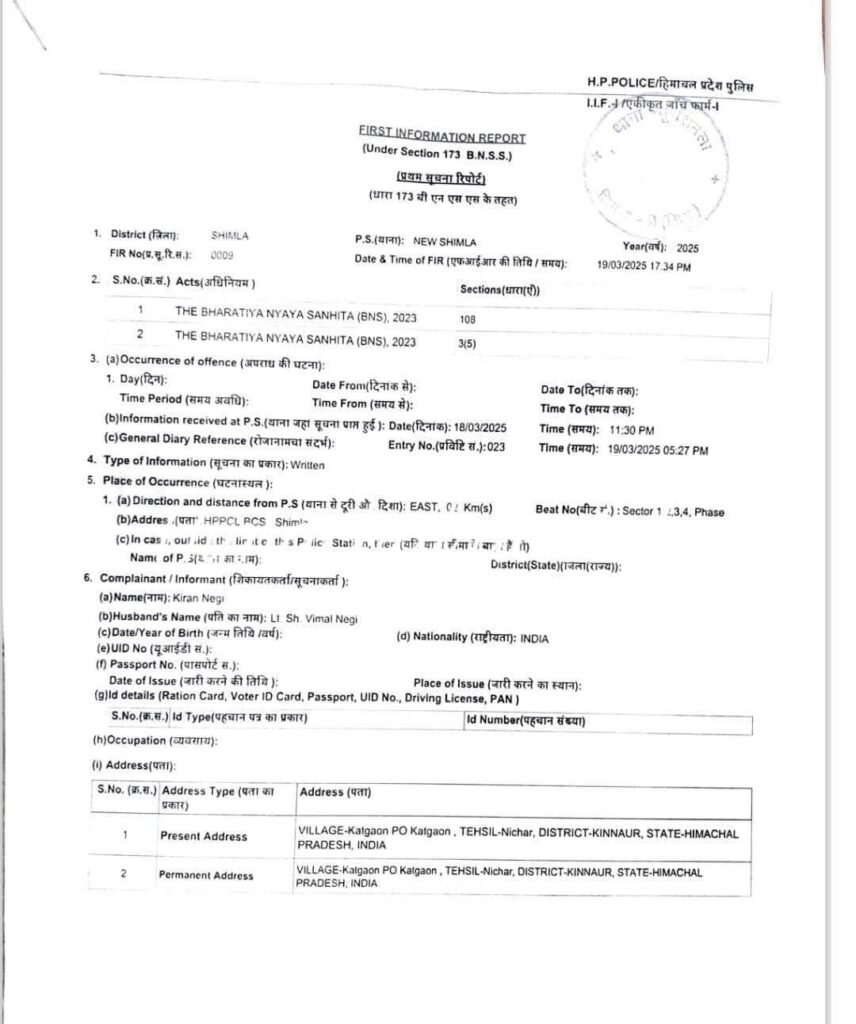 News विमल नेगी की मौत के मामले में पत्नी की शिकायत पर FIR दर्ज by Himachalaajkal March 20, 2025 Share FacebookTwitterPinterestWhatsApp Previous articleशिमला के ऑक्लैैंड हाऊस स्कूल के बच्चों ने देखी विधानसभा की कार्यवाहीNext articleचीफ इंजीनियर विमल नेगी मौत मामले में सरकार ने की बड़ी कार्रवाई, निदेशक देशराज (इलेक्ट्रिकल) को निलंबित किया Himachalaajkalhttp://himachalaajkal.in Get in Touch LEAVE A REPLY Cancel reply Comment: Please enter your comment! Name:* Please enter your name here Email:* You have entered an incorrect email address! Please enter your email address here Website: Save my name, email, and website in this browser for the next time I comment. Related Articles News मुख्यमंत्री को होली उत्सव के लिए आमंत्रित किया News ग्रामीण बैंक ने मुख्यमंत्री आपदा राहत कोष में दिया योगदान News मुख्यमंत्री ने किसी भी पात्र व्यक्ति की सामाजिक सुरक्षा पेंशन बंद नहीं करने के निर्देश दिए Live Cricket ScoresShimla, Himachal Pradesh weather forecast hourly