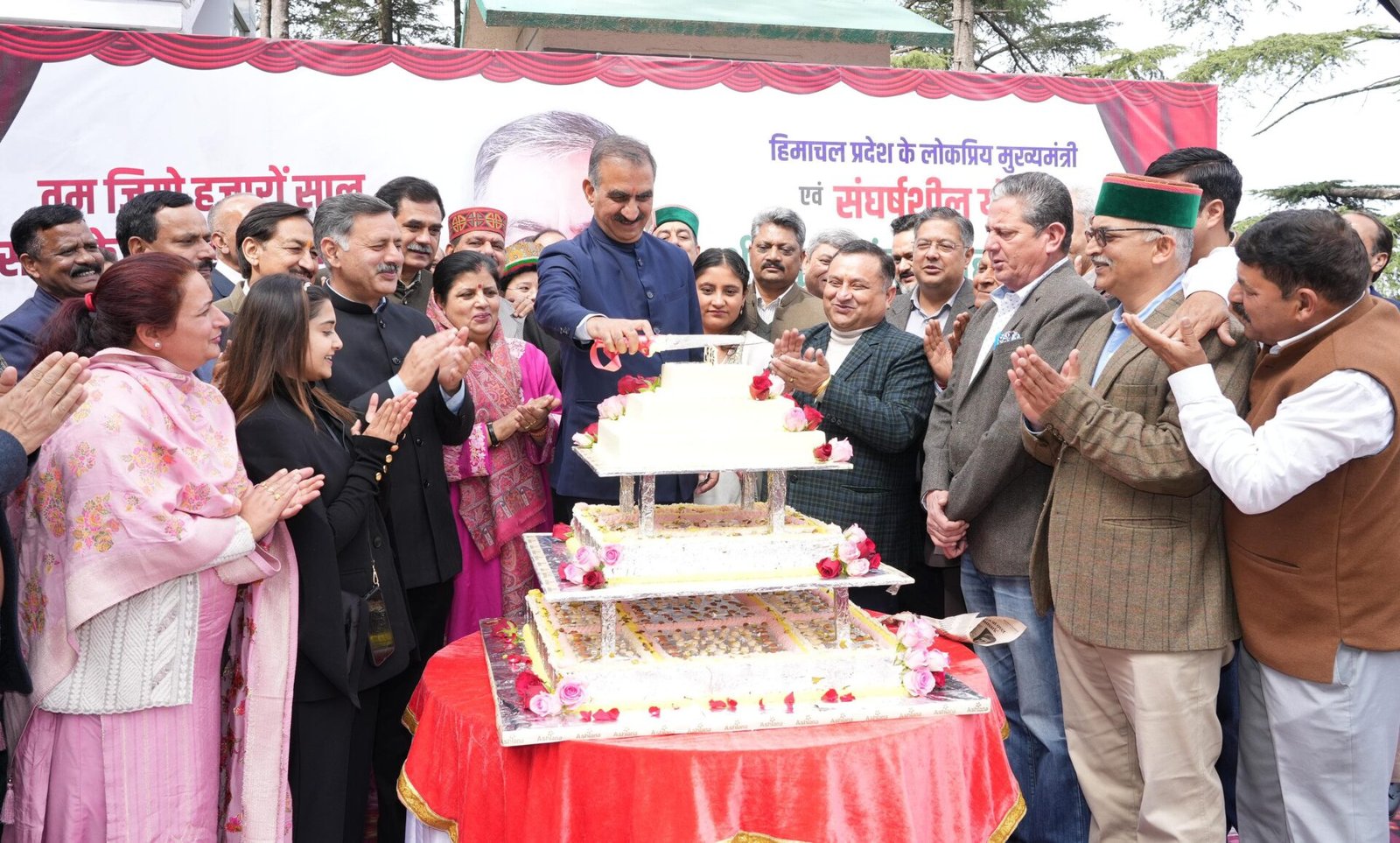 शिमला। मुख्यमंत्री ठाकुर सुखविंद्र सिंह सुक्खू ने आज अपने आधिकारिक निवास ओक ओवर में मंत्रिमंडल के सदस्यों, विधायकों, पार्टी कार्यकर्ताओं, विभिन्न बोर्डों एवं निगमों के अध्यक्षों, वरिष्ठ अधिकारियों और बड़ी संख्या में आए लोगों के साथ अपना 62वां जन्मदिन मनाया।