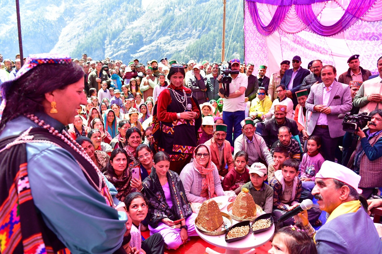 शिमला। मुख्यमंत्री ठाकुर सुखविंद्र सिंह सुक्खू का जिला चम्बा के दुर्गम क्षेत्र पांगी के किलाड़ पहुंचने पर पारम्परिक परिधान पहने स्थानीय लोगों ने गर्मजोशी के साथ स्वागत किया। विभिन्न पंचायतों के प्रतिनिधियों ने मुख्यमंत्री को सम्मानित किया तथा अपने मुद्दों को उनके समक्ष रखा।