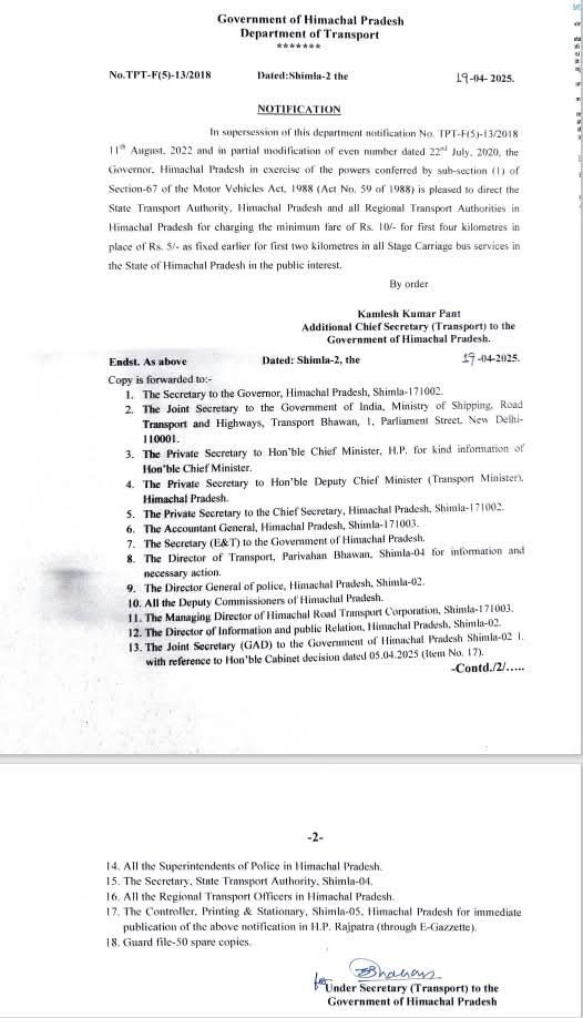News सरकार ने न्यूनतम बस किराए को 5 से 10 रुपए बढ़ाने की अधिसूचना जारी की by Himachalaajkal April 19, 2025 Share FacebookTwitterPinterestWhatsApp Previous article2 करोड़ 65 लाख की लागत से स्तरोन्नत होंगी मातलू बघाल सड़क : शिक्षा मंत्रीNext articleकुंदन कलांटा व चंदन मलोक्टा ने की कांग्रेस में वापसी Himachalaajkalhttp://himachalaajkal.in Get in Touch LEAVE A REPLY Cancel reply Comment: Please enter your comment! Name:* Please enter your name here Email:* You have entered an incorrect email address! Please enter your email address here Website: Save my name, email, and website in this browser for the next time I comment. Related Articles News मुख्यमंत्री को होली उत्सव के लिए आमंत्रित किया News ग्रामीण बैंक ने मुख्यमंत्री आपदा राहत कोष में दिया योगदान News मुख्यमंत्री ने किसी भी पात्र व्यक्ति की सामाजिक सुरक्षा पेंशन बंद नहीं करने के निर्देश दिए Live Cricket ScoresShimla, Himachal Pradesh weather forecast hourly
