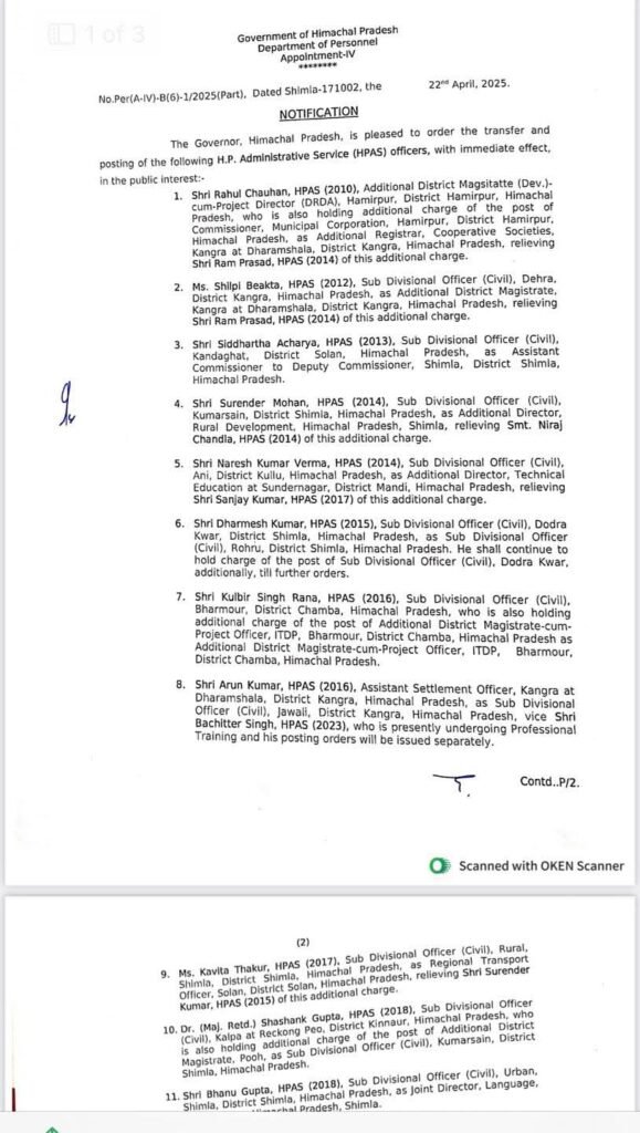 News हिमाचल में प्रशासनिक फेरबदल, सरकार ने बदले 24 HAS अधिकारी by Himachalaajkal April 22, 2025 Share FacebookTwitterPinterestWhatsApp Previous articleशिमला में 26 अप्रैल को संविधान बचाओ अभियान की शुरूआत करेगी कांग्रेसNext articleमुख्यमंत्री ने पहलगाम आतंकी हमले की निंदा की Himachalaajkalhttp://himachalaajkal.in Get in Touch LEAVE A REPLY Cancel reply Comment: Please enter your comment! Name:* Please enter your name here Email:* You have entered an incorrect email address! Please enter your email address here Website: Save my name, email, and website in this browser for the next time I comment. Related Articles News मुख्यमंत्री सुखविंदर सिंह सुक्खू 21 मार्च को करेंगे बजट पेश News प्रदेश सरकार ने पूर्व सैनिकों के कल्याण के लिए 17 करोड़ प्रदान किएः मुख्यमंत्री News नावर के कांग्रेस कार्यकर्ताओं ने रोहित ठाकुर से मुलाकात की Live Cricket ScoresShimla, Himachal Pradesh weather forecast hourly