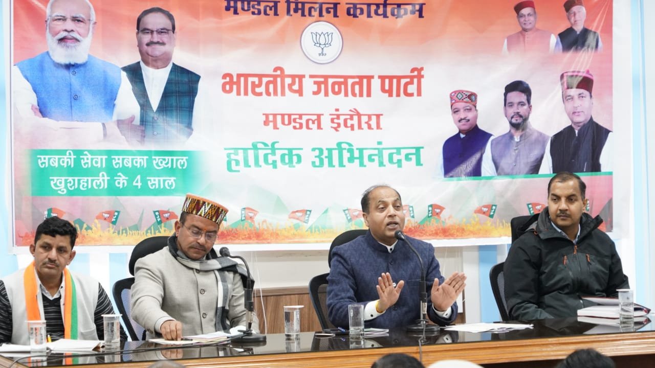 धर्मशाला, मुख्यमंत्री राम ठाकुर ने वीरवार को धर्मशाला में मंडल मिलन कार्यक्रम के तहत इंदौरा, भटियात और शाहपुर के भाजपा मंडलों के साथ बैठक की। मुख्यमंत्री ने पार्टी पदाधिकारियों से जमीनी स्तर पर पार्टी को मजबूत करने के लिए अधिक समर्पण और प्रतिबद्धता के साथ काम करने का आग्रह किया। मुख्यमंत्री ने पदाधिकारियों से राज्य सरकार की नीतियों और कार्यक्रमों का प्रभावी ढंग से प्रसार सुनिश्चित करने का भी आग्रह किया ताकि लोग राज्य सरकार की कल्याणकारी योजनाओं का लाभ उठा सकें।