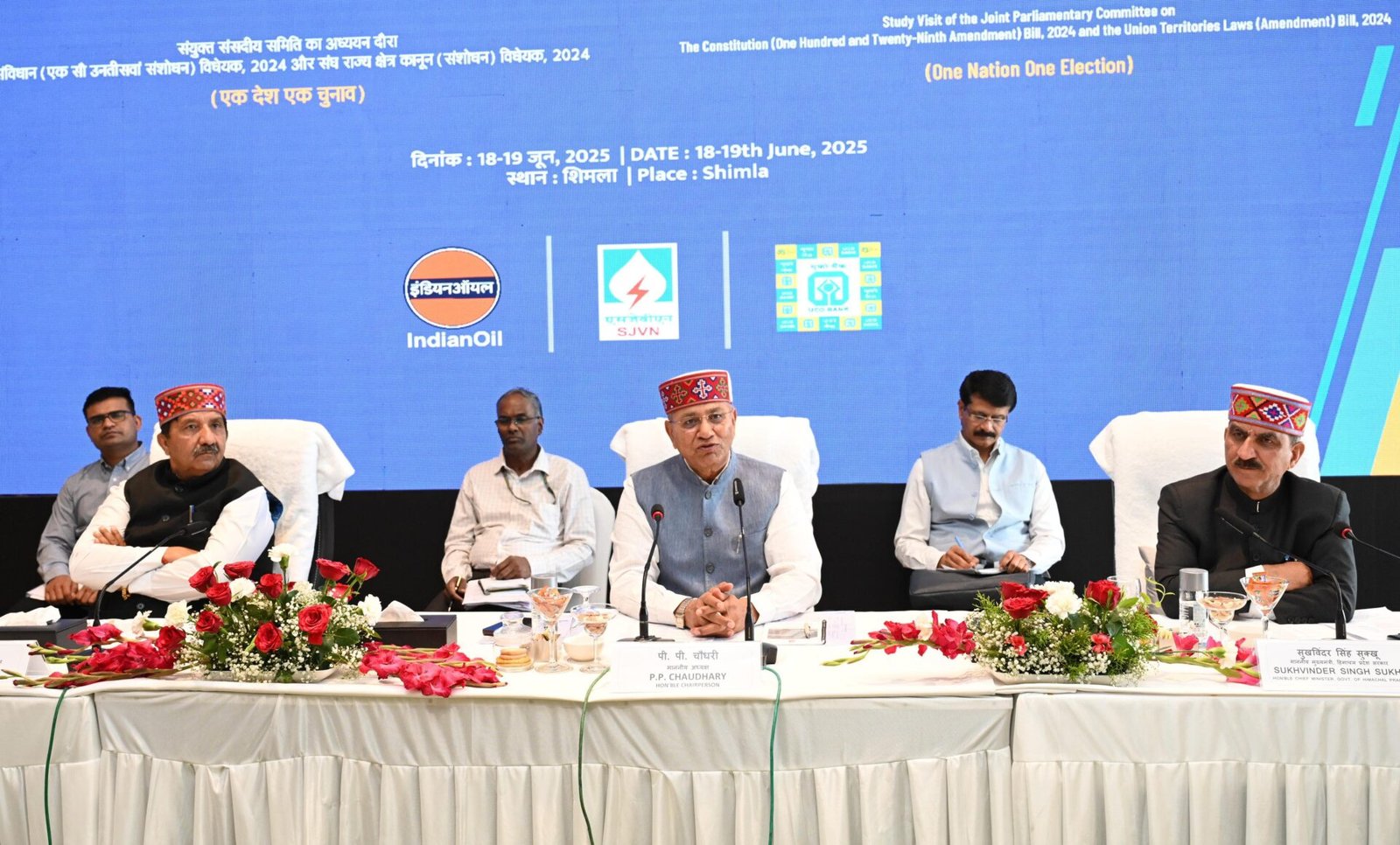 शिमला। एक देश-एक चुनाव के प्रस्ताव से संबंधित संविधान (एक सौ उनतीसवां संशोधन) विधेयक, 2024 और केंद्र शासित प्रदेश कानून (संशोधन) विधेयक 2024 के लिए गठित संयुक्त संसदीय समिति (जेपीसी) ने आज शिमला में मुख्यमंत्री ठाकुर सुखविंद्र सिंह सुक्खू के साथ बैठक की।
