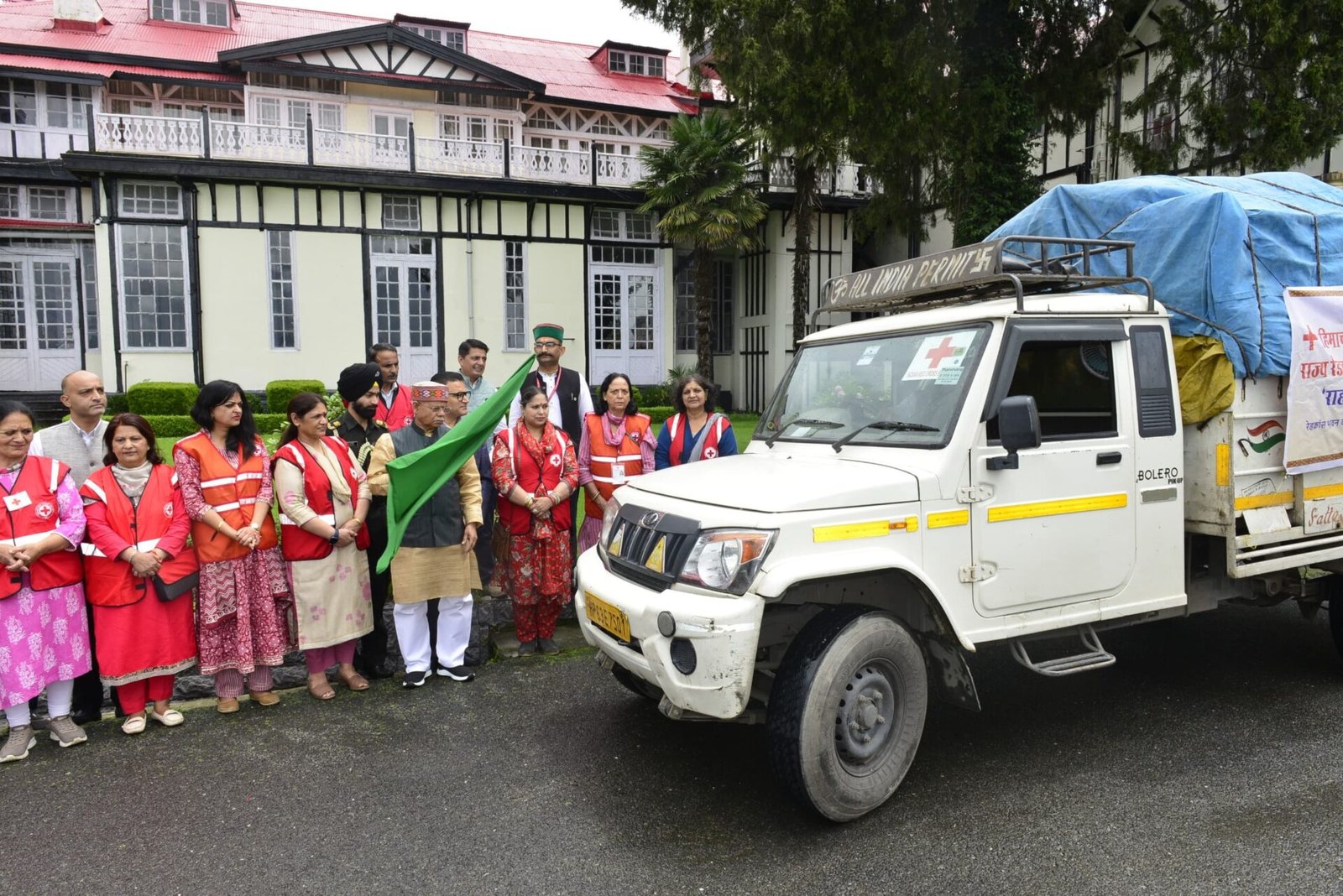 राज्यपाल ने प्राकृतिक आपदा प्रभावित मंडी जिले के लिए राहत सामग्री के वाहनों को दिखाई हरी झंडी
