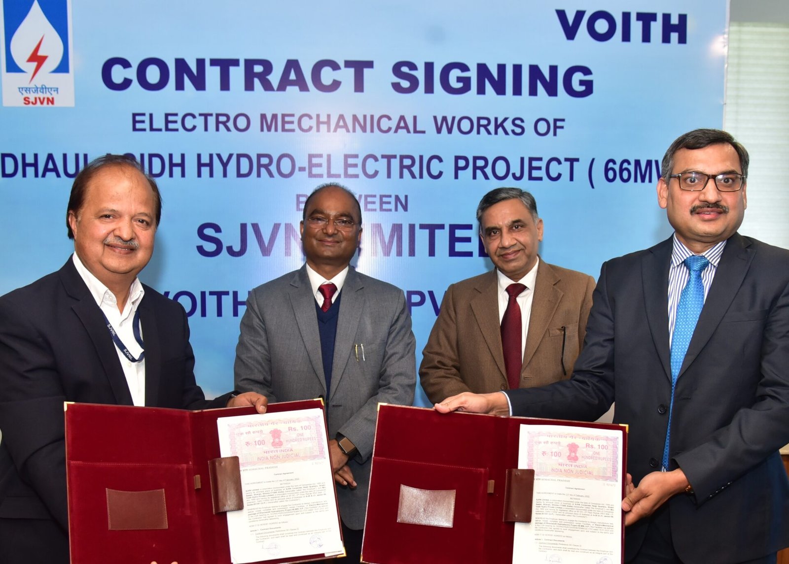 एसजेवीएन के अध्यक्ष एवं प्रबंध निदेशक नंद लाल शर्मा की उपस्थिति में एसजेवीएन के मुख्य महाप्रबंधक (ईसीडी) एसके सूद और मैसर्स वोइथ के उपाध्यक्ष राज विद्यार्थी ने अनुबंध समझौते पर हस्ताक्षर किए गए। इस अवसर पर गीता कपूर निदेशक (कार्मिक), एसपी बंसल, निदेशक (सिविल), अखिलेश्वर सिंह, निदेशक (वित्त) सुशील शर्मा, निदेशक (विद्युत) संजीव कुमार, सीएफआे (मैसर्स वोइथ हाइड्रो लिमिटेड) और एसजेवीएन एवं मैसर्स वोइथ के वरिष्ठ अधिकारी भी उपस्थित थे।