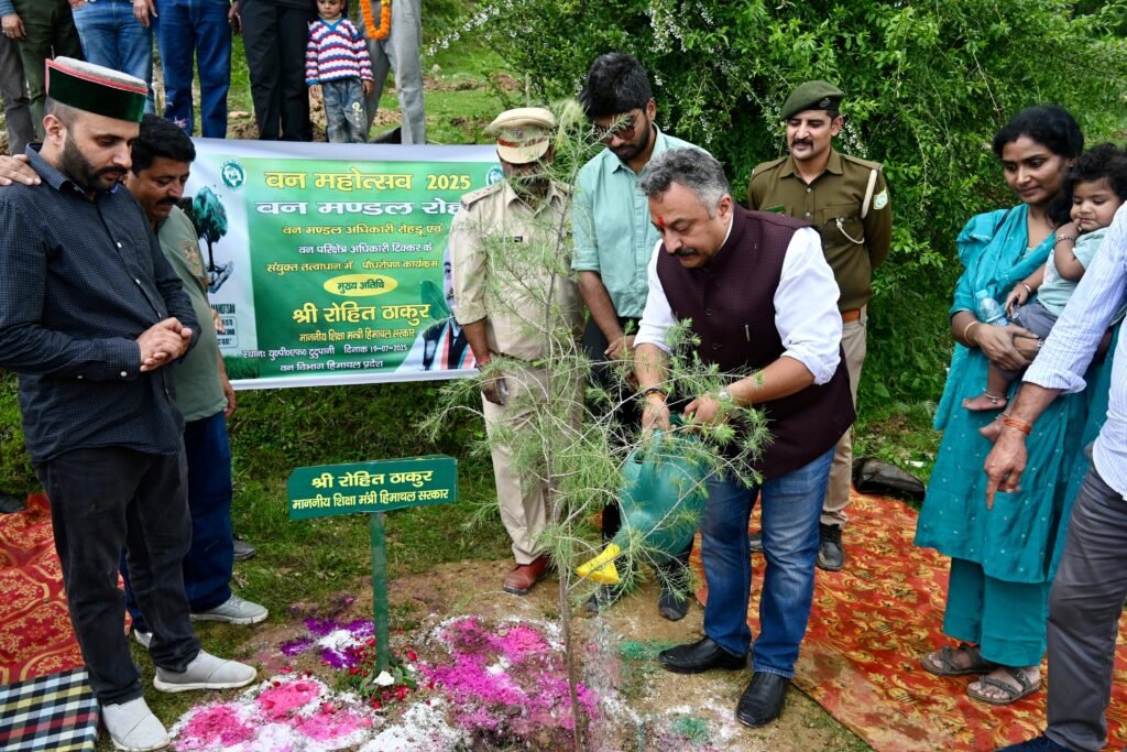 रोहित ठाकुर ने वन महोत्सव कार्यक्रम के तहत वन क्षेत्र टूटूपानी में किए गए पौधारोपण कार्यक्रम में हिस्सा लिया और देवदार का पौधा रोपित किया। उन्होंने बताया कि वर्तमान में पर्यावरण संरक्षण और जलवायु परिवर्तन के लिए इस प्रकार के पौधारोपण कार्यक्रम अपनी एक अलग महत्ता रखते है और इसे एक अभियान के रूप में हम सभी को अपनाना होगा। इस दौरान शिक्षा मंत्री ने राजकीय वरिष्ठ माध्यमिक विद्यालय कुठाड़ी एवं आयुर्वेदिक उप-स्वास्थ्य केंद्र घासनी के भवन के निर्माण कार्यों का निरिक्षण भी किया।