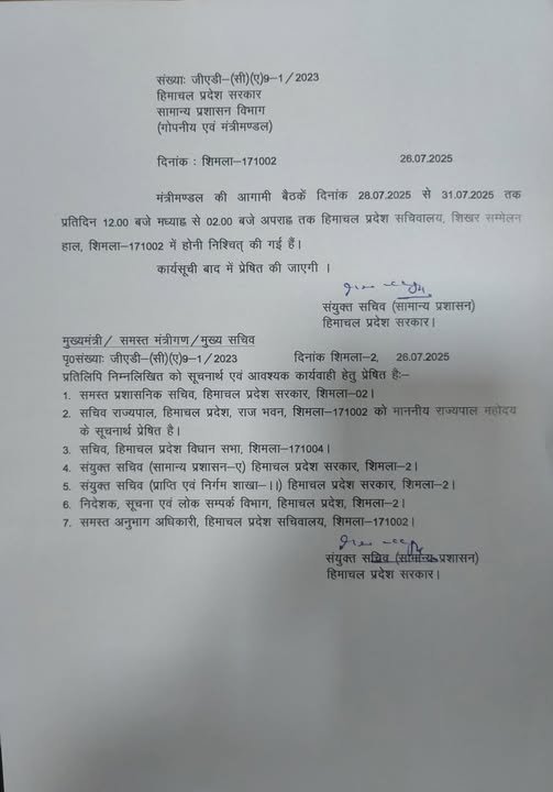 News 28 जुलाई से 31 जुलाई तक रोज 4 दिन होंगी हिमाचल मंत्रिमंडल की बैठकें by Himachalaajkal July 26, 2025 Share FacebookTwitterPinterestWhatsApp Previous articleशिक्षा मंत्री ने नगरोटा बगवां में रखी कन्या छात्रावास की आधारशिलाNext articleअरण्य वन्य प्राणी उद्यान बनखंडी में विश्व स्तरीय सुविधाएं उपलब्ध होंगी: सुक्खू Himachalaajkalhttp://himachalaajkal.in Get in Touch LEAVE A REPLY Cancel reply Comment: Please enter your comment! Name:* Please enter your name here Email:* You have entered an incorrect email address! Please enter your email address here Website: Save my name, email, and website in this browser for the next time I comment. Related Articles News शिक्षा मंत्री 2 मार्च को कोटखाई क्षेत्र के दौरे पर News टाहू-कथांडी के लोगों ने की शिक्षा मंत्री से मुलाकात News शिमला। मुख्यमंत्री सुखविंद्र सिंह सुक्खू ने आज आईजीएमसी में विधायक और 7वें राज्य वित्त आयोग के चेयरमैन नंद लाल का हालचाल जाना। मुख्यमंत्री ने... Live Cricket ScoresShimla, Himachal Pradesh weather forecast hourly