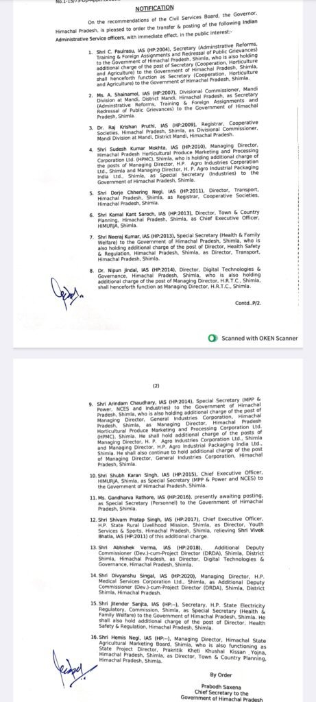 News हिमाचल में प्रशासनिक फेरबदल by Himachalaajkal August 1, 2025 Share FacebookTwitterPinterestWhatsApp Previous articleमुख्यमंत्री ने केबीसी फेम अरुणोदय शर्मा की फिल्म द लास्ट ड्रॉप की विशेष स्क्रीनिंग देखीNext articleप्राकृतिक आपदा से सडक़ों, पुलों, जलापूर्ति योजनाओं, व आवासीय संपत्तियों को भारी नुकसान हुआ : सुक्खू Himachalaajkalhttp://himachalaajkal.in Get in Touch LEAVE A REPLY Cancel reply Comment: Please enter your comment! Name:* Please enter your name here Email:* You have entered an incorrect email address! Please enter your email address here Website: Save my name, email, and website in this browser for the next time I comment. Related Articles News मुख्यमंत्री से नादौन विधानसभा क्षेत्र के बड़ा और फस्टे ग्राम पंचायत के प्रतिनिधिमंडल ने की मुलाक़ात News समावेशी शासन की दिशा में सशक्त कदमः सामाजिक सुरक्षा से सुदृढ़ हो रहा वंचित वर्ग News शिक्षा मंत्री ने निजी बस हादसे में 14 लोगों की मृत्यु पर शोक व्यक्त किया Live Cricket ScoresShimla, Himachal Pradesh weather forecast hourly