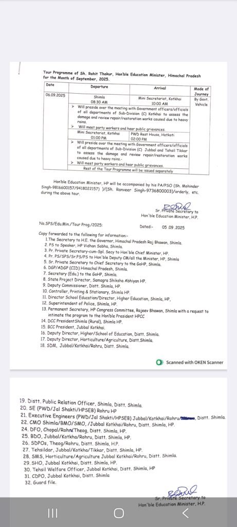 News शिक्षा मंत्री रोहित ठाकुर 6 सितम्बर को जुब्बल-नावर-कोटखाई विधानसभा क्षेत्र के प्रवास पर रहेंगे by Himachalaajkal September 5, 2025 Share FacebookTwitterPinterestWhatsApp Previous articleआपदा प्रभावितों को वन भूमि और विशेष राहत पैकेज के लिए केन्द्र पर दबाव बनाएं भाजपा सांसद: मुख्यमंत्रीNext articleदेश व प्रदेश मंडियों में पहुंची 1.40 करोड़ सेब की पेटियां Himachalaajkalhttp://himachalaajkal.in Get in Touch LEAVE A REPLY Cancel reply Comment: Please enter your comment! Name:* Please enter your name here Email:* You have entered an incorrect email address! Please enter your email address here Website: Save my name, email, and website in this browser for the next time I comment. Related Articles News मुख्यमंत्री से नादौन विधानसभा क्षेत्र के बड़ा और फस्टे ग्राम पंचायत के प्रतिनिधिमंडल ने की मुलाक़ात News समावेशी शासन की दिशा में सशक्त कदमः सामाजिक सुरक्षा से सुदृढ़ हो रहा वंचित वर्ग News शिक्षा मंत्री ने निजी बस हादसे में 14 लोगों की मृत्यु पर शोक व्यक्त किया Live Cricket ScoresShimla, Himachal Pradesh weather forecast hourly