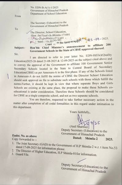 शिक्षा हिमाचल के 100 स्कूल अब CBSE होंगे by Himachalaajkal September 25, 2025 Share FacebookTwitterPinterestWhatsApp Previous articleआईओसी के अध्यक्ष ने सुक्खू से मुलाकात कीNext articleहिमाचल के सरकारी स्कूलों में हाजिरी को लेकर हम आदेश जारी,समर स्कूलों में सभी अध्यापक और अन्य कर्मचारियों की हाजिरी सुबह 9.30 बजे से पहले जबकि विंटर क्लोजिंग स्कूलों में उपस्थिति सुबह 10.30 बजे से पहले दर्ज करने के ऑर्डर जारी किए Himachalaajkalhttp://himachalaajkal.in Get in Touch LEAVE A REPLY Cancel reply Comment: Please enter your comment! Name:* Please enter your name here Email:* You have entered an incorrect email address! Please enter your email address here Website: Save my name, email, and website in this browser for the next time I comment. Related Articles शिक्षा शिक्षा मंत्री रोहित ठाकुर की अगुवाई में तेलंगाना पहुंचा हिमाचल का दल, मुख्यमंत्री ए. रेवंत रेड्डी के साथ हुई बैठक, तेलंगाना का स्किल और... शिक्षा हिमाचल में 1,968 स्कूल क्लस्टर बनाए गए : सुक्खू शिक्षा शिक्षा मंत्री ने अरसू स्कूल में वार्षिक पुरस्कार वितरण समारोह में शिरकत की Live Cricket ScoresShimla, Himachal Pradesh weather forecast hourly
