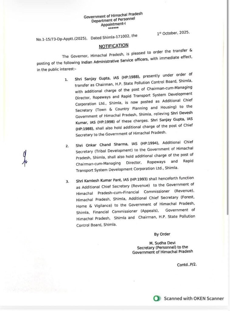 News IAS संजय गुप्ता को चीफ सेक्रेटरी का अतिरिक्त कार्यभार मिला, अधिसूचना जारी by Himachalaajkal October 1, 2025 Share FacebookTwitterPinterestWhatsApp Previous articleवृद्धजनों की स्वास्थ्य जांच के लिए रोगी मित्र योजना लाने पर विचार: मुख्यमंत्रीNext articleवरिष्ठ IAS अधिकारी संजय गुप्ता ने हिमाचल सरकार के मुख्य सचिव के पद का अतिरिक्त कार्यभार संभाला Himachalaajkalhttp://himachalaajkal.in Get in Touch LEAVE A REPLY Cancel reply Comment: Please enter your comment! Name:* Please enter your name here Email:* You have entered an incorrect email address! Please enter your email address here Website: Save my name, email, and website in this browser for the next time I comment. Related Articles News शिमला। मुख्यमंत्री सुखविंद्र सिंह सुक्खू ने आज आईजीएमसी में विधायक और 7वें राज्य वित्त आयोग के चेयरमैन नंद लाल का हालचाल जाना। मुख्यमंत्री ने... News मुख्यमंत्री को होली उत्सव के लिए आमंत्रित किया News ग्रामीण बैंक ने मुख्यमंत्री आपदा राहत कोष में दिया योगदान Live Cricket ScoresShimla, Himachal Pradesh weather forecast hourly