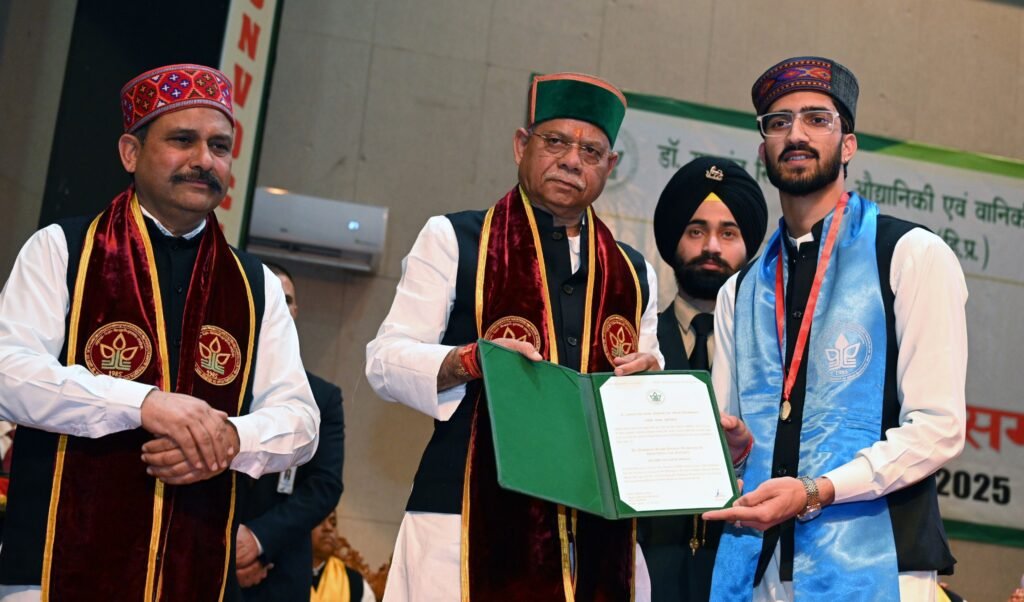 शिमला। राज्यपाल शिव प्रताप शुक्ल ने आज सोलन के नौणी स्थित डॉ. यशवंत सिंह परमार औद्यानिकी एवं वानिकी विश्वविद्यालय (वाईएसपीयूएचएफ) के 14वें दीक्षांत समारोह की अध्यक्षता की। उन्होंने कुल 12 स्वर्ण पदक प्रदान किए, जिनमें से 9 स्वर्ण पदक छात्राओं को मिले। राज्यपाल ने 518 मेधावी प्रमाण पत्र तथा उद्यानिकी व वानिकी के 855 डिग्री वितरित कीं।