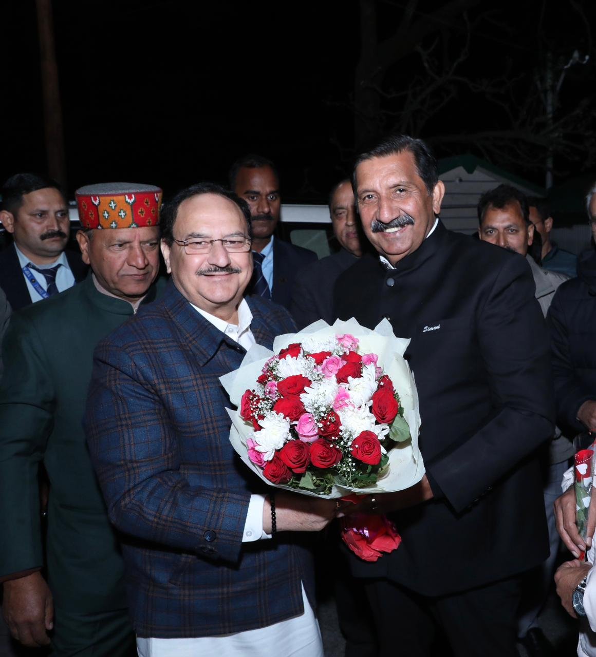 शिमला। भाजपा के राष्ट्रीय अध्यक्ष जगत प्रकाश नड्डा छोटा शिमला स्थित उपमुख्यमंत्री श्री मुकेश अग्निहोत्री के आवास पर पहुंचे। इस दौरान उन्होंने उपमुख्यमंत्री की इकलौती बेटी डा. आस्था अग्निहोत्री के विवाह अवसर पर हार्दिक बधाई व शुभकामनाएँ दीं।