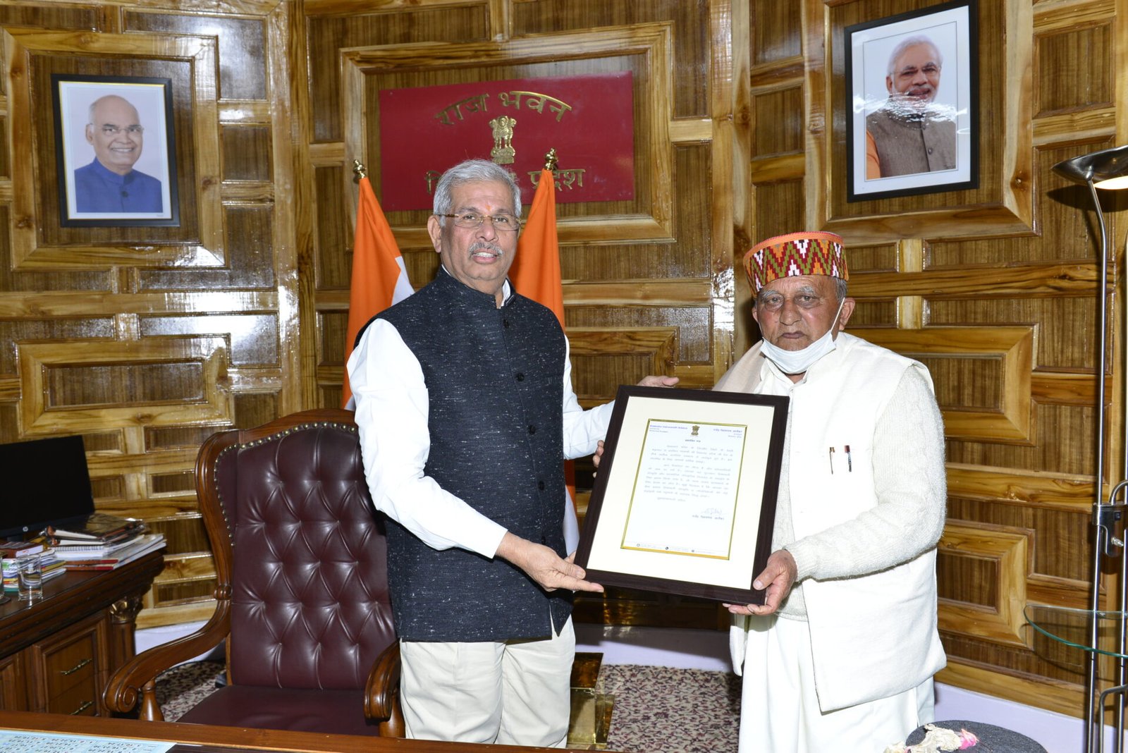 शिमला। राज्यपाल राजेंद्र विश्वनाथ आर्लेकर ने आज राजभवन में विद्यानंद सरैक को सम्मानित किया, जिन्हंे हाल ही में देश के चौथे सर्वोच्च नागरिक सम्मान पद्मश्री से अलंकृत किया गया है। राज्यपाल ने श्री सरैक को परिवार सहित राजभवन में दोपहर भोज के लिए आमंत्रित किया। राज्यपाल ने उन्हें ‘प्रशस्ति पत्र’, हिमाचली शॉल व टोपी तथा स्मृति चिन्ह देकर सम्मानित किया। उन्होंने उनकी धर्मपत्नी गीता सरैक को भी सम्मानित किया।