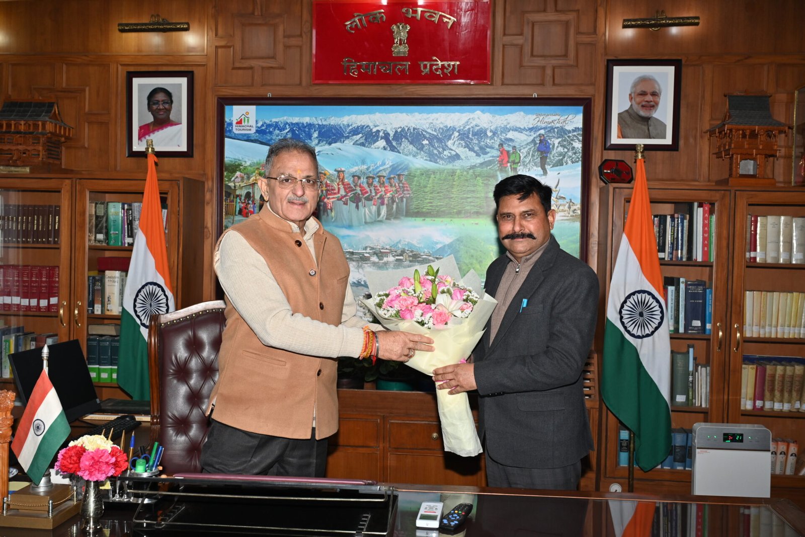 शिमला। राज्यपाल कविन्द्र गुप्ता से आज लोक भवन में हिमाचल प्रदेश विश्वविद्यालय शिमला के कुलपति प्रो. महावीर सिंह और डॉ. यशवंत सिंह परमार औद्यानिकी एवं वानिकी विश्वविद्यालय नौणी के कुलपति प्रो. राजेश्वर सिंह चंदेल ने भेंट की।