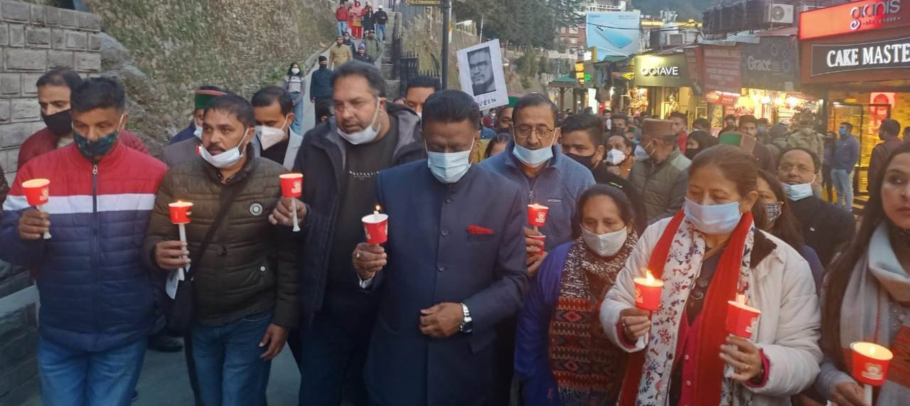 इस कैंडल मार्च में जिला शिमला शहरी कांग्रेस के अध्यक्ष जितेंद्र चौधरी, ग्रामीण के अध्यक्ष यशवंत छाजटा, कांग्रेस सचिव हरिकृष्ण हिमराल, सुशान्त कपरेट,यशपाल तनाईक, बलदेव ठाकुर, महिला कांग्रेस अध्यक्ष जैनब चंदेल,युवा कांग्रेस अध्यक्ष निगम भंडारी, कार्यकारी अध्यक्ष यदोपति ठाकुर,नरेंद्र कवंर, छतर सिंह,सेनराम नेगी,राजेश वर्मा मुकुल गुप्ता, राहुल मेहरा, मुस्कान थापर, सचिन बरवाल, अमित, हेमंत शर्मा, महेश ठाकुर, दलीप कुमार, राजेश कांठला सहित अनय काँग्रेस कार्यकर्ता उपसथित रहे !