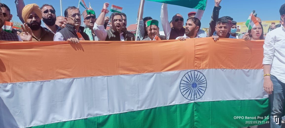 शिमला। प्रदेश कांग्रेस के विधायक विक्रमादित्य सिंह ने मंगलवार को अलगाववादी ताकतों के विरोध में देश की एकता और अंखडता के लिए विधानसभा परिसर से रिज मैदान तक एक तिरंगा यात्रा निकाली। एक हजार मीटर लम्बे इस तिरंगा यात्रा में पार्टी के अनेक नेताओं,, पार्टी पदाधिकारियों युवा कांग्रेस, महिला कांग्रेस,एनएसयूआई व अन्य सेंकडो कार्यकर्ताओ ने भाग लिया।